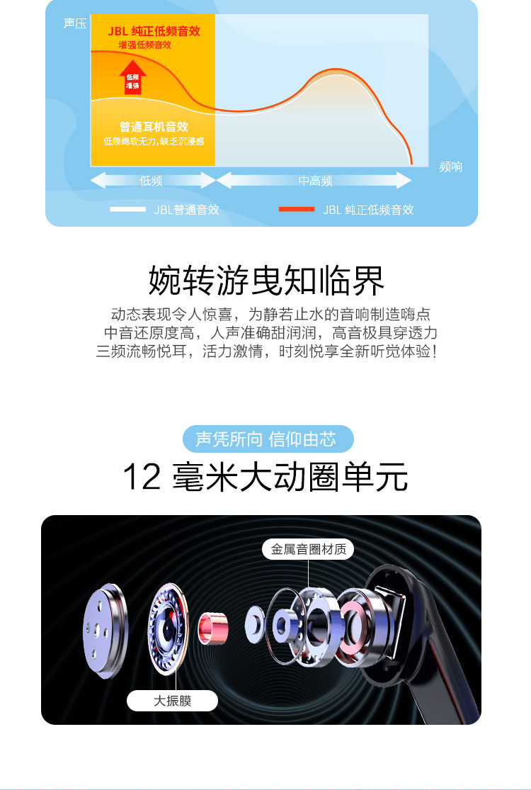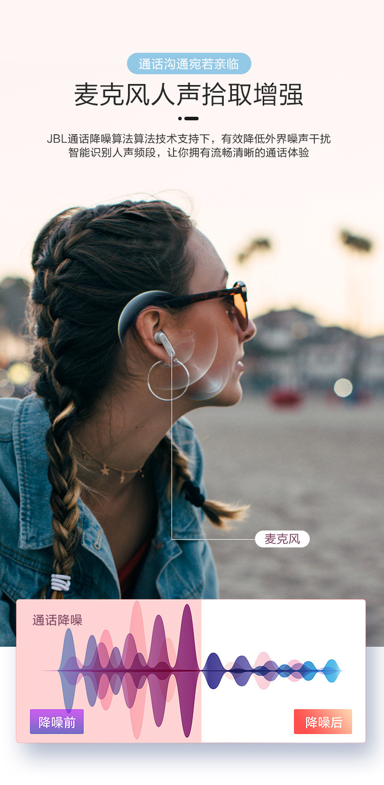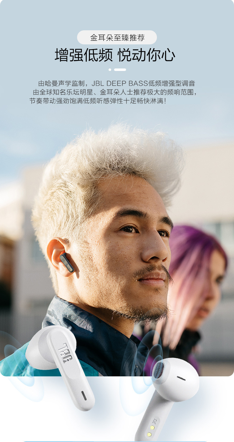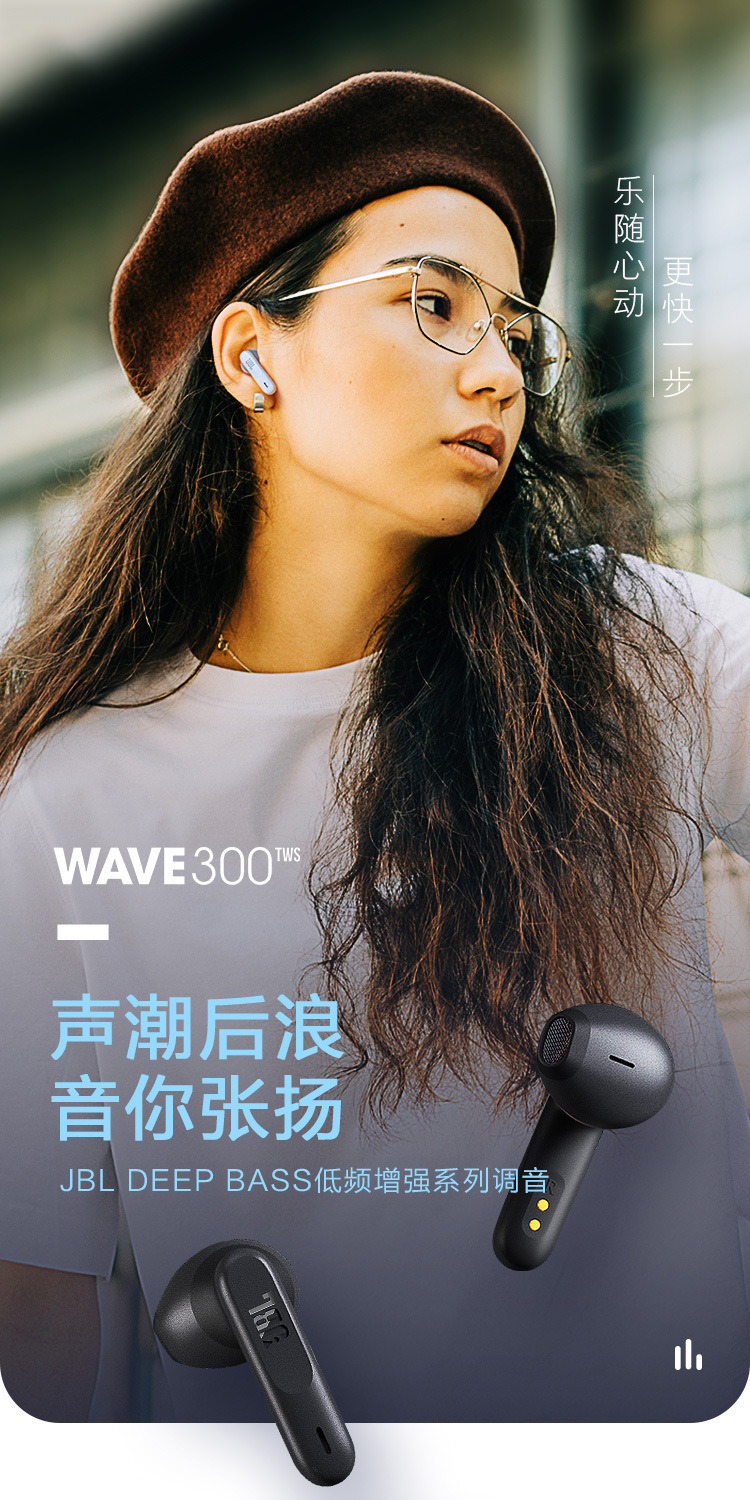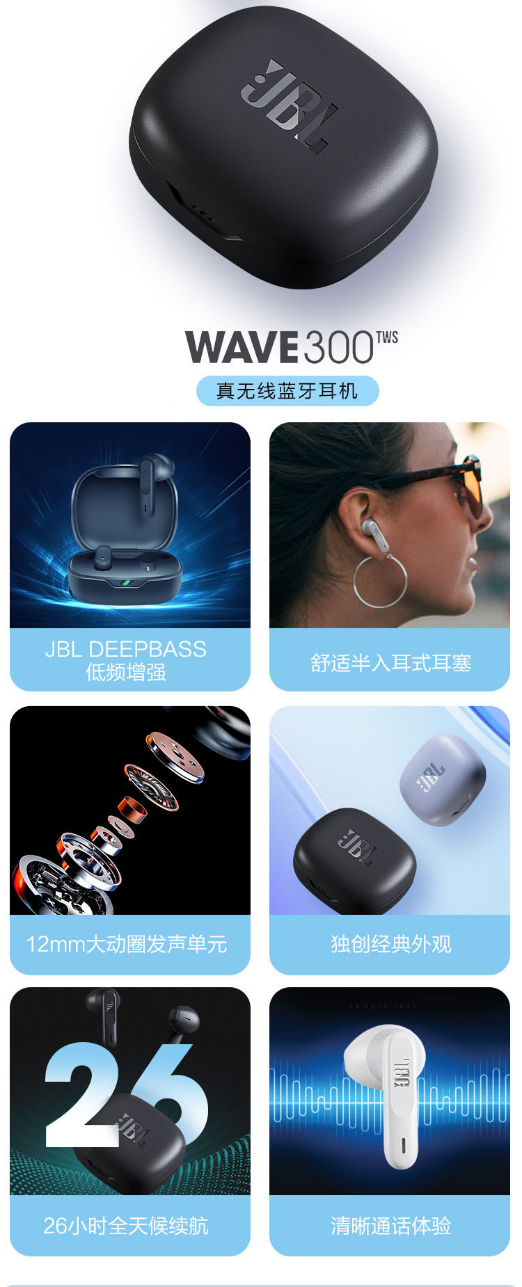 适用JBLWAVE300TWS无线蓝牙耳机半入耳式平头塞运动防水重低音