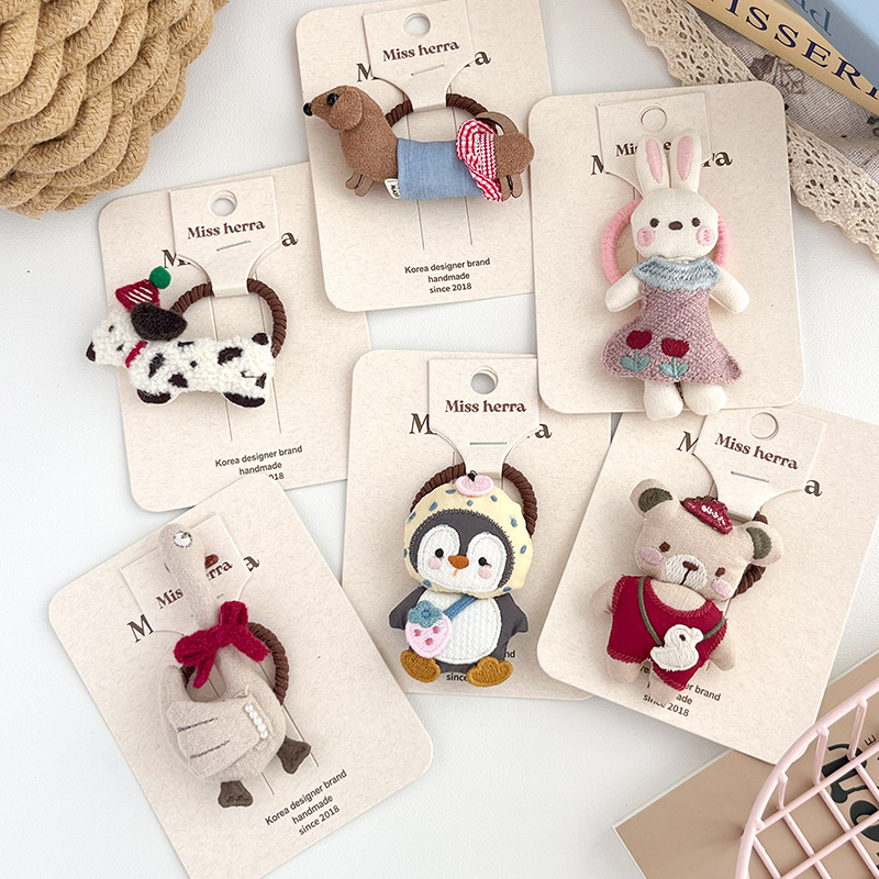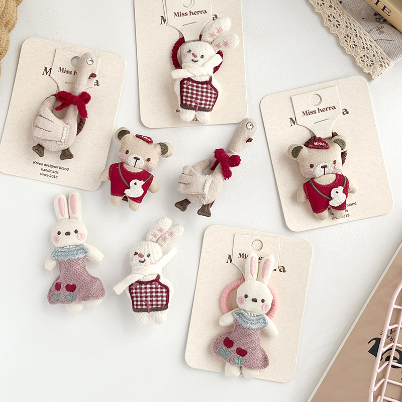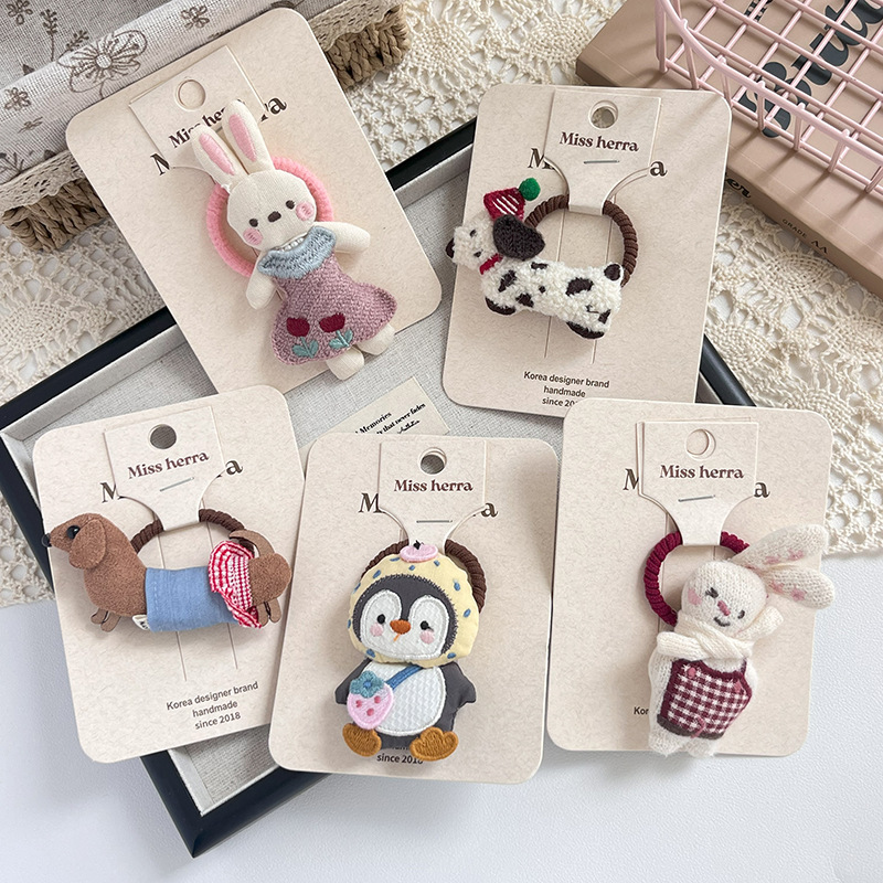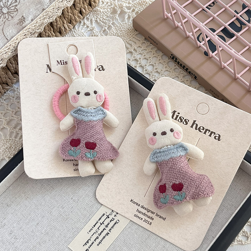 儿童充棉卡通立体小兔子发夹发圈可爱狗狗头饰扎头发马尾辫女孩子