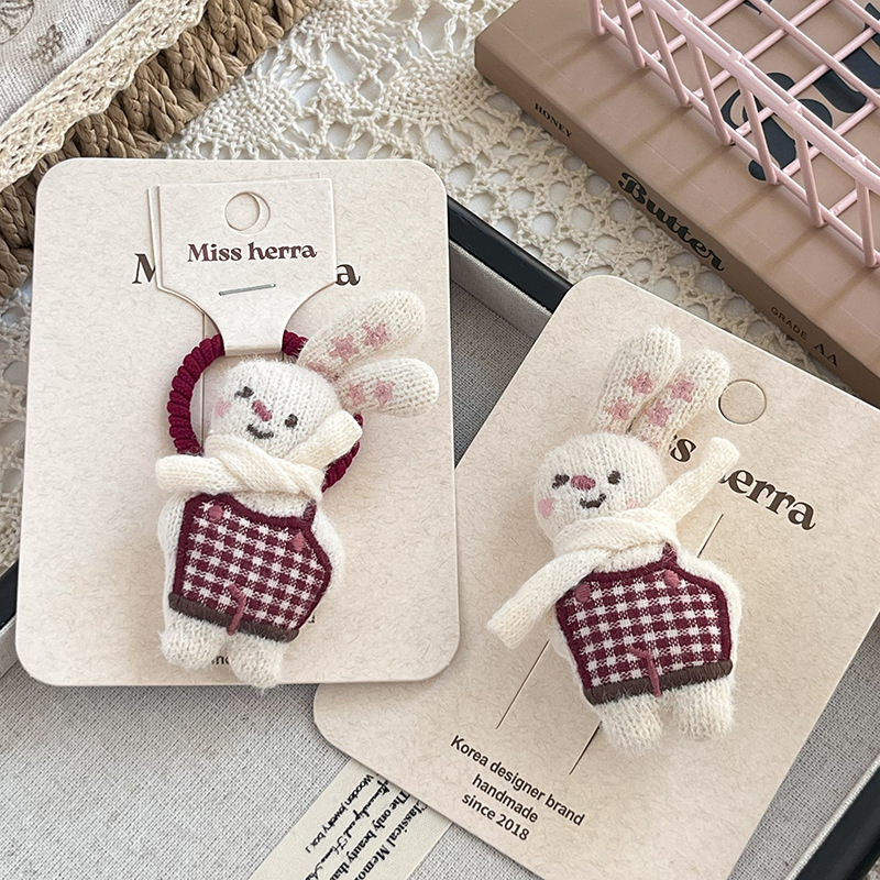 红色格纹兔子发圈
