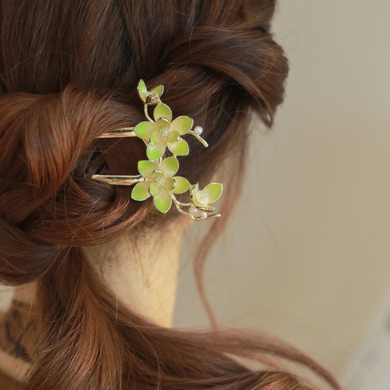 国风花朵发簪高级感新中式U形簪子女古风旗袍汉服盘发钗头饰发饰