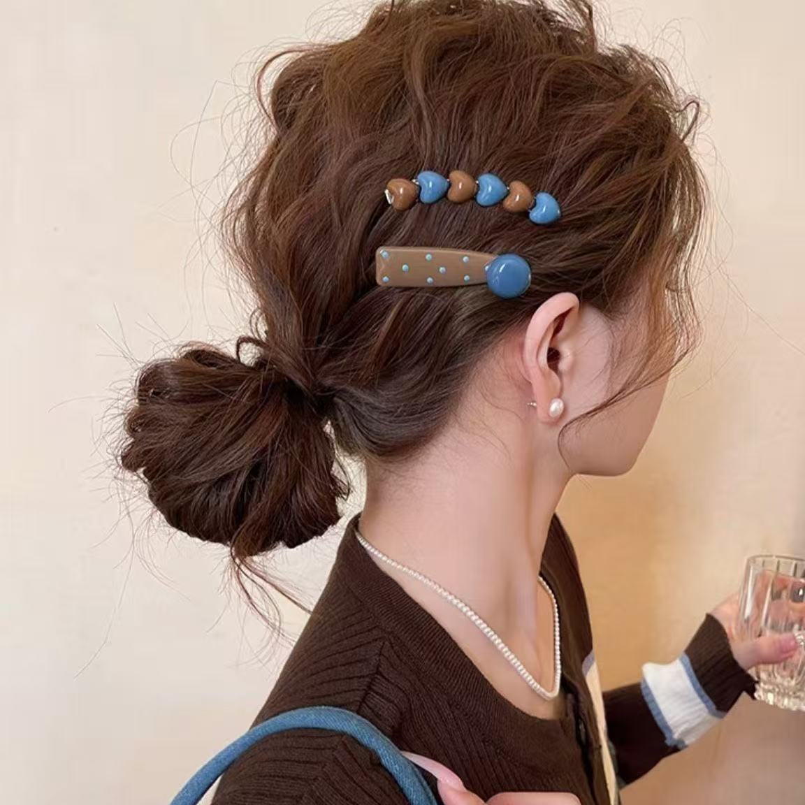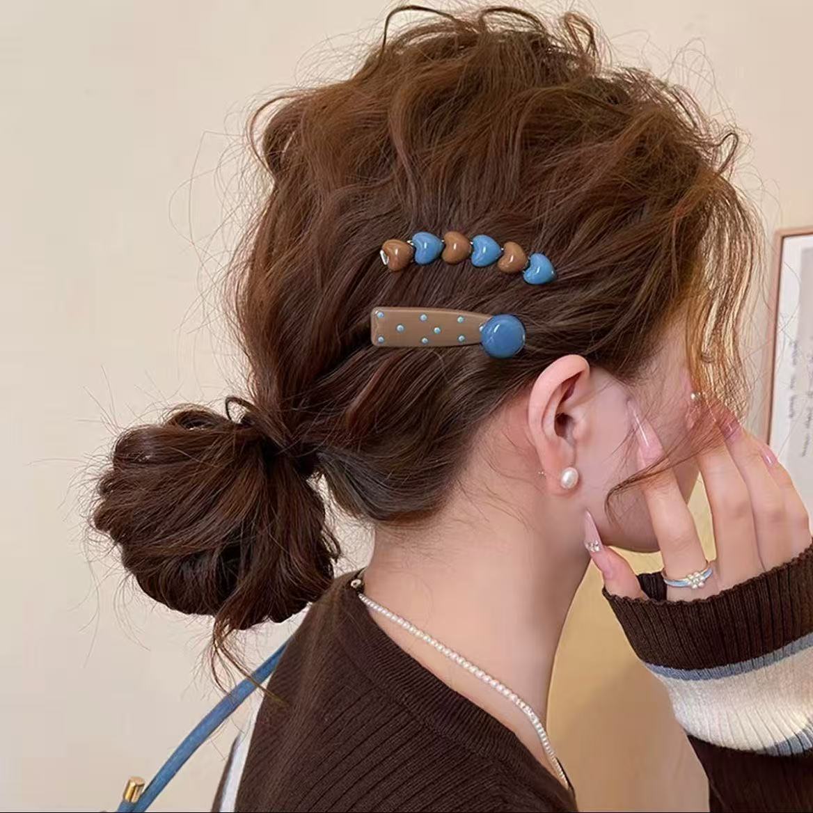 海盐奶咖~高级感波点发夹女爱心一字发卡碎发刘海夹头饰2025新款