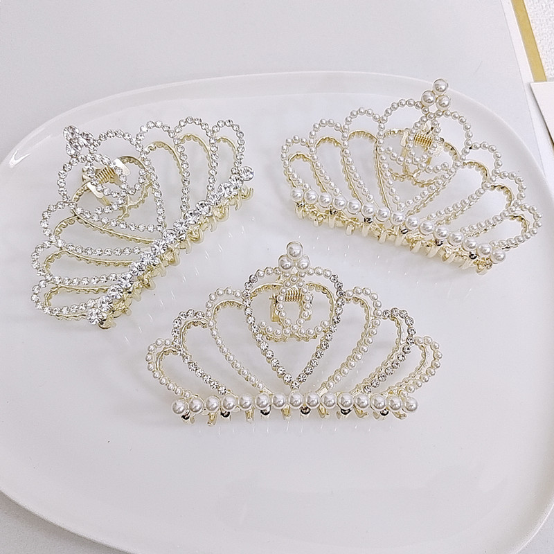新款合金皇冠抓夹 水钻后脑勺洗澡发卡发饰女气质珍珠鲨鱼夹发夹