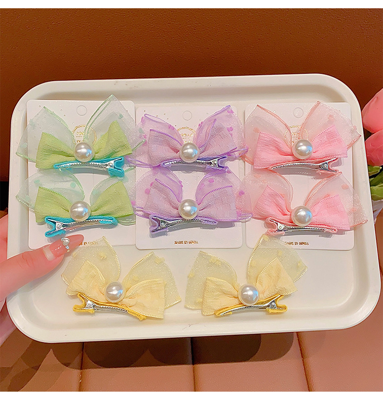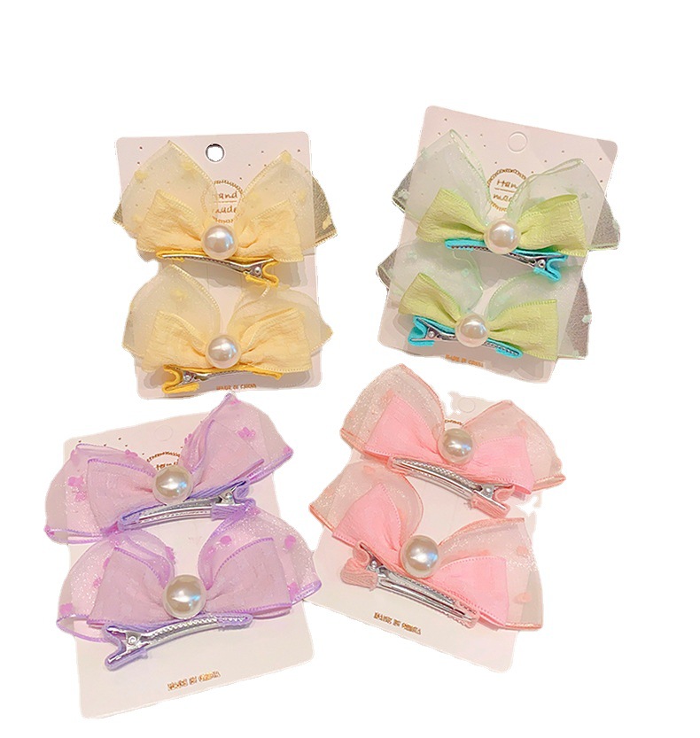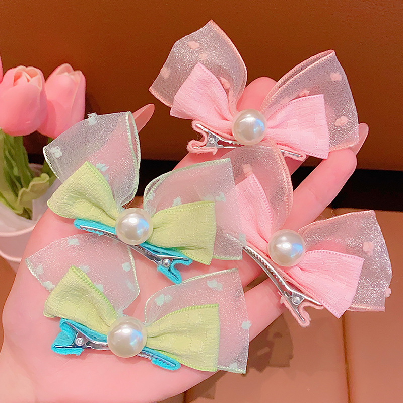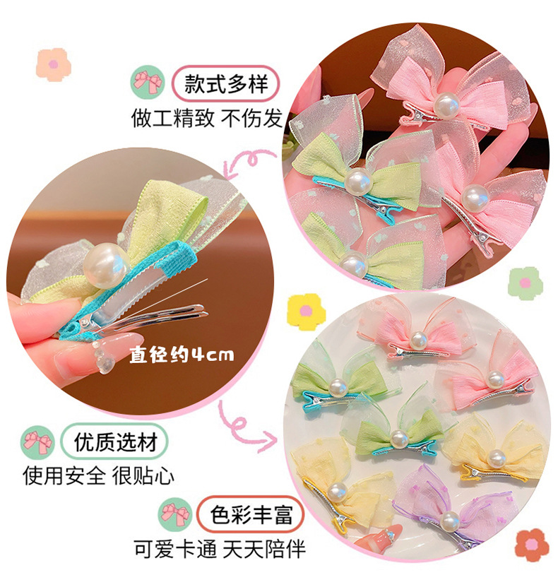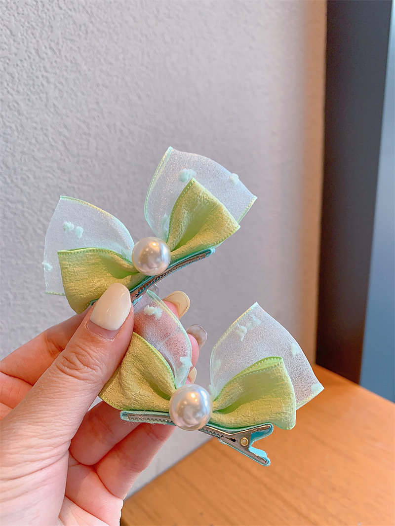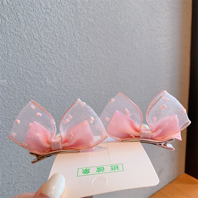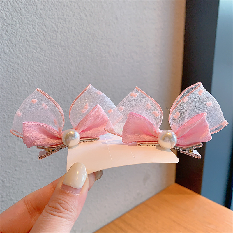韩版珍珠立体蝴蝶结兔耳朵宝宝对夹小清新泡泡纱儿童发夹可爱头饰