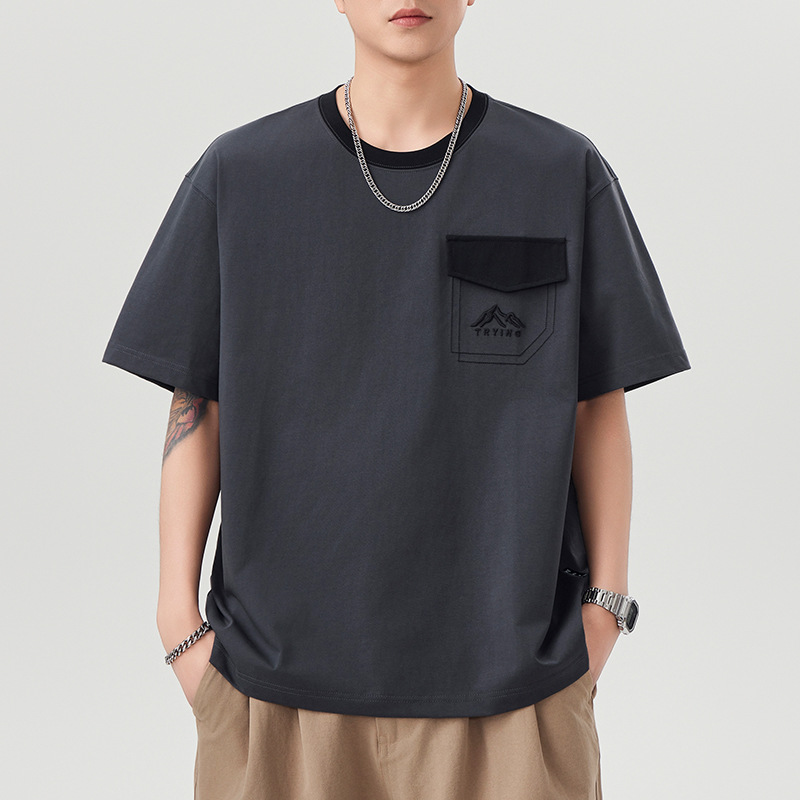 山系美式复古潮牌工装短袖t恤男士夏季新款痞帅休闲半袖体恤衫男