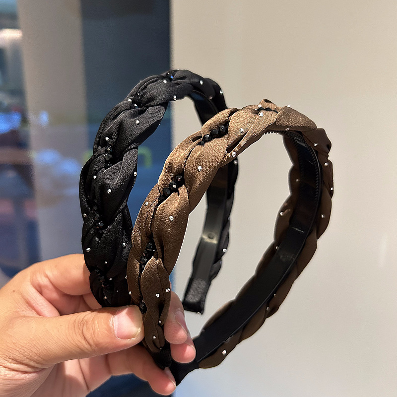 新款时尚水钻发箍女网红高颅顶头饰宽边洗脸发卡麻花头箍