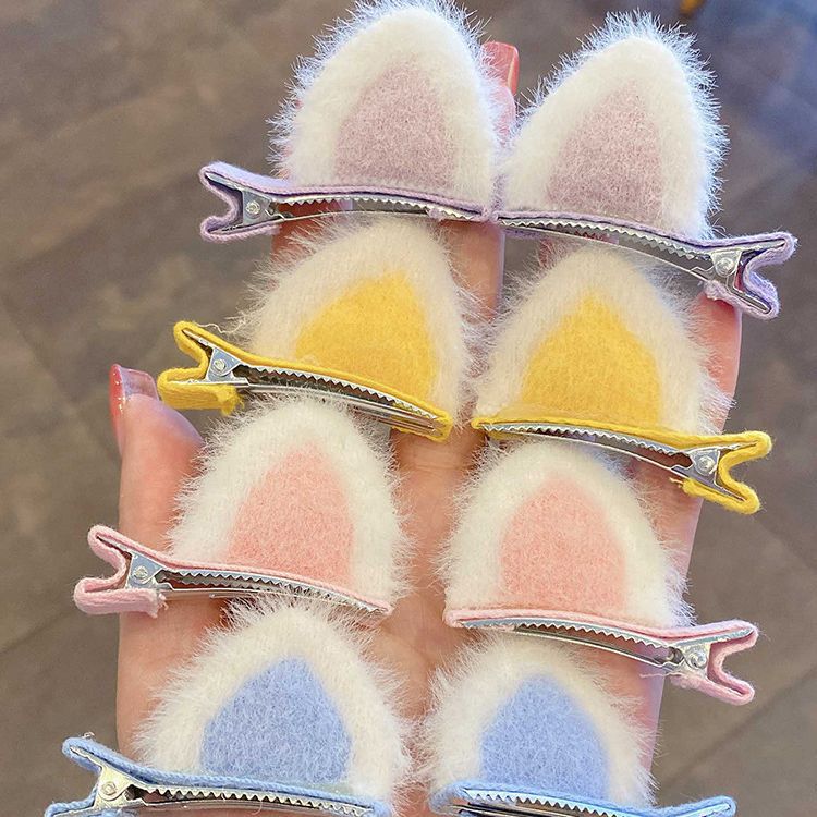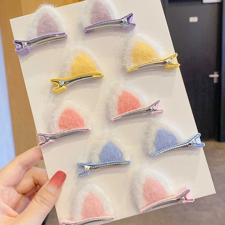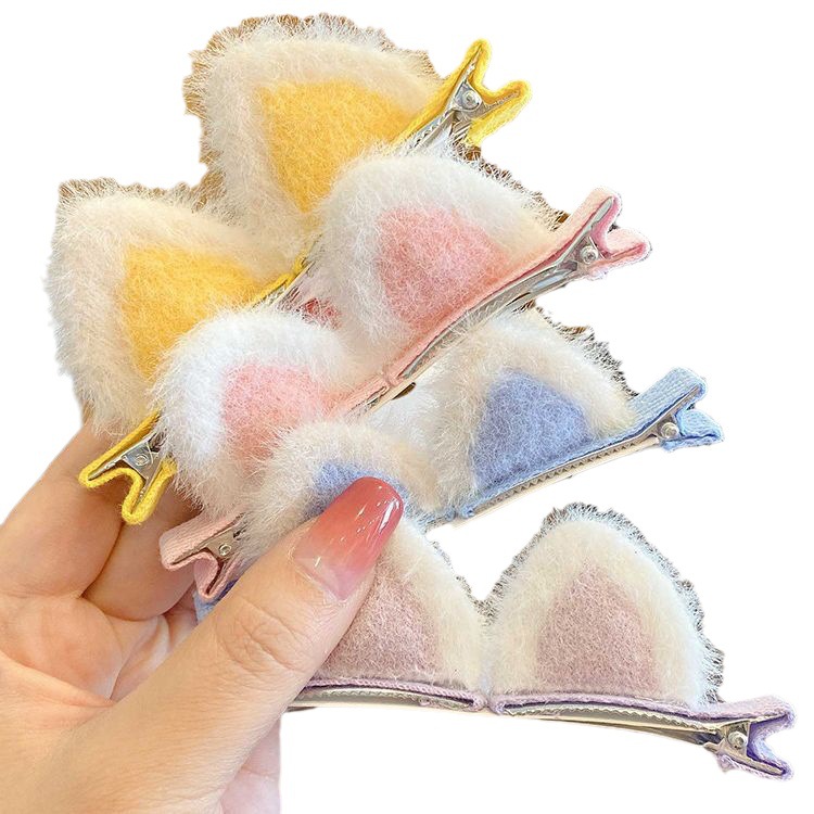 毛绒猫咪发夹女猫耳朵小夹子头饰儿童可爱毛毛发卡顶夹鸭嘴夹
