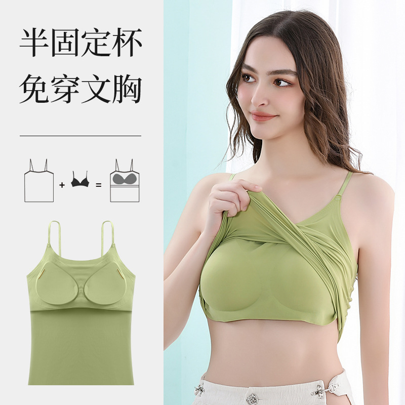 冰丝长款打底吊带背心带胸垫固定杯内搭无痕轻薄透气外穿美背女士