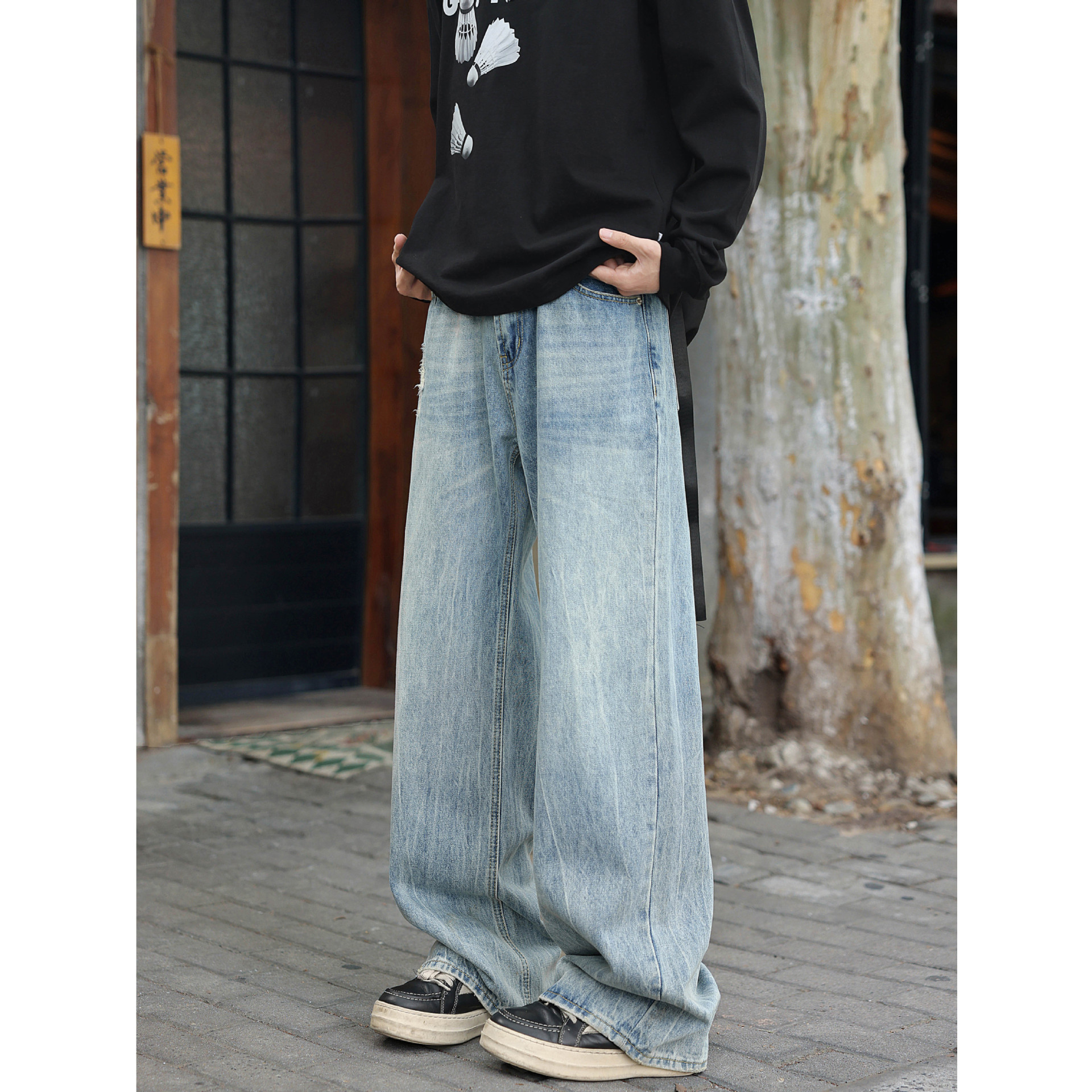 牛仔裤子男2025年青少年春秋季阔腿宽松百搭休闲裤子男潮流直筒裤