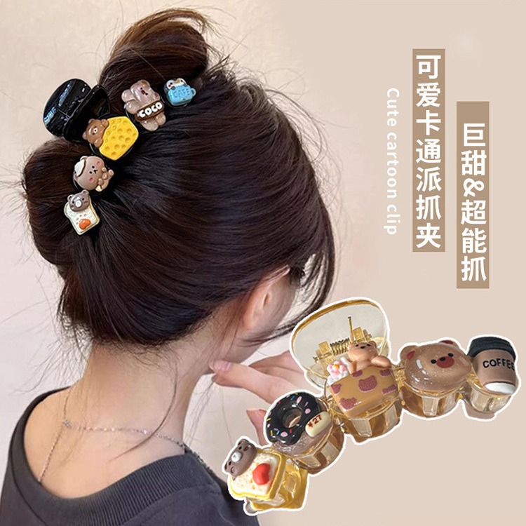卡通可爱饼干抓夹女新款高级感发夹后脑勺盘发头饰鲨鱼夹发抓