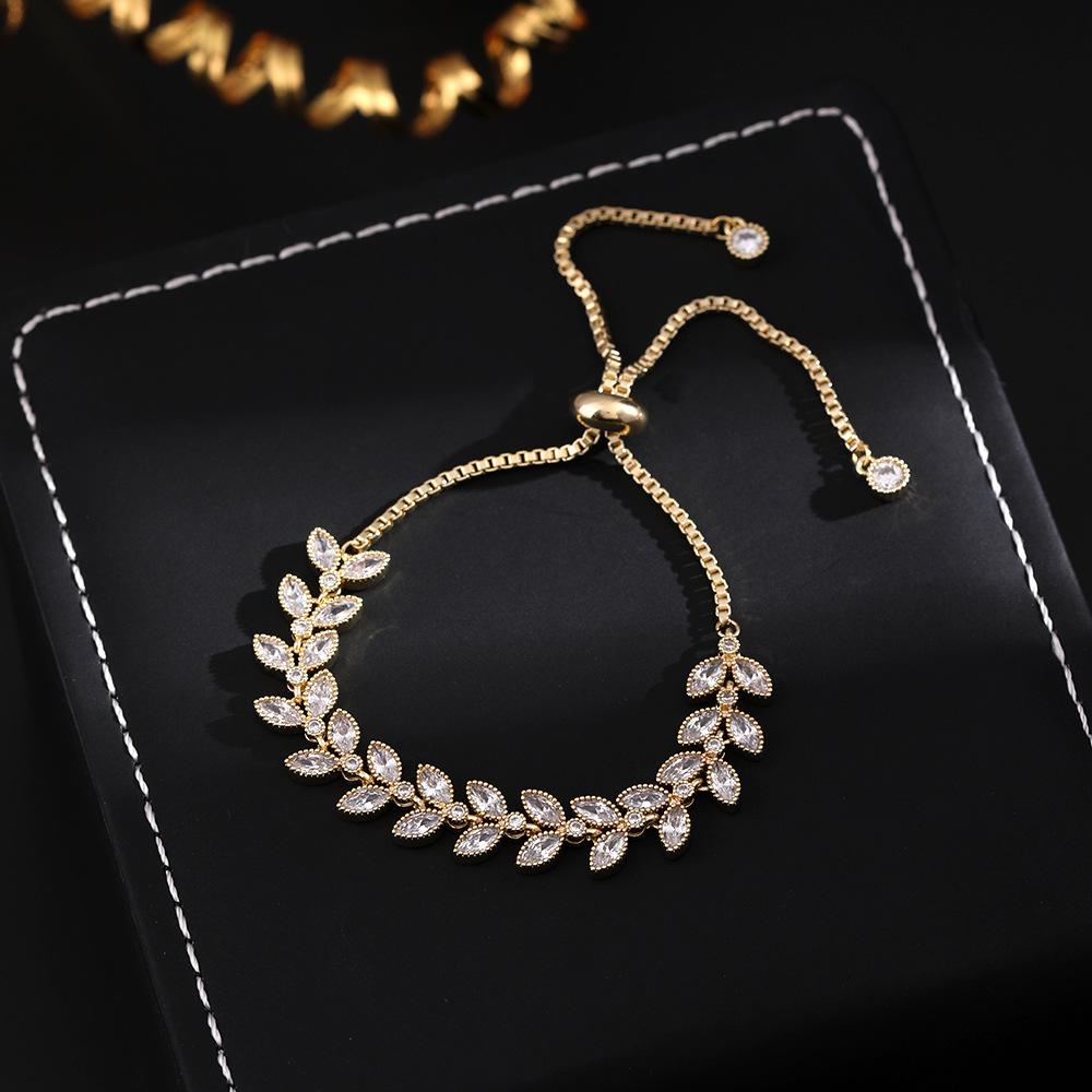高版本真金电镀微镶锆石叶子手链百搭气质时尚精致可抽拉手链女