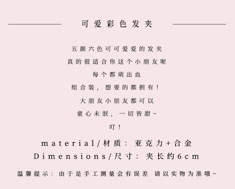 彩色儿童碎发夹套装女童可爱卡通侧边夹小女孩刘海夹发卡鸭嘴夹子