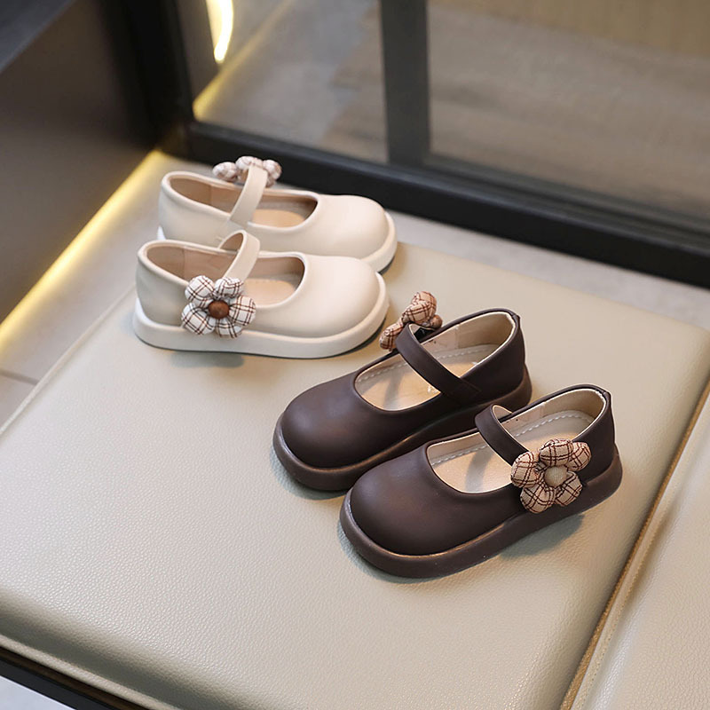 女童花朵公主鞋2025春季新款儿童圆头厚底皮鞋韩版小童玛丽珍单鞋