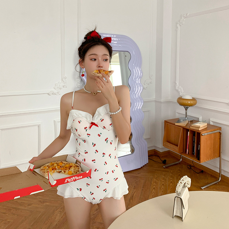 新款显瘦遮肚温泉泳装小樱桃钢托聚拢小胸显瘦泳衣女
