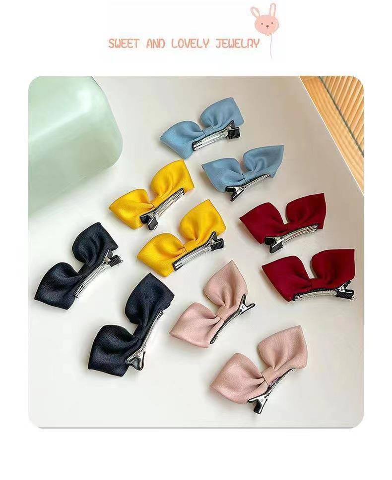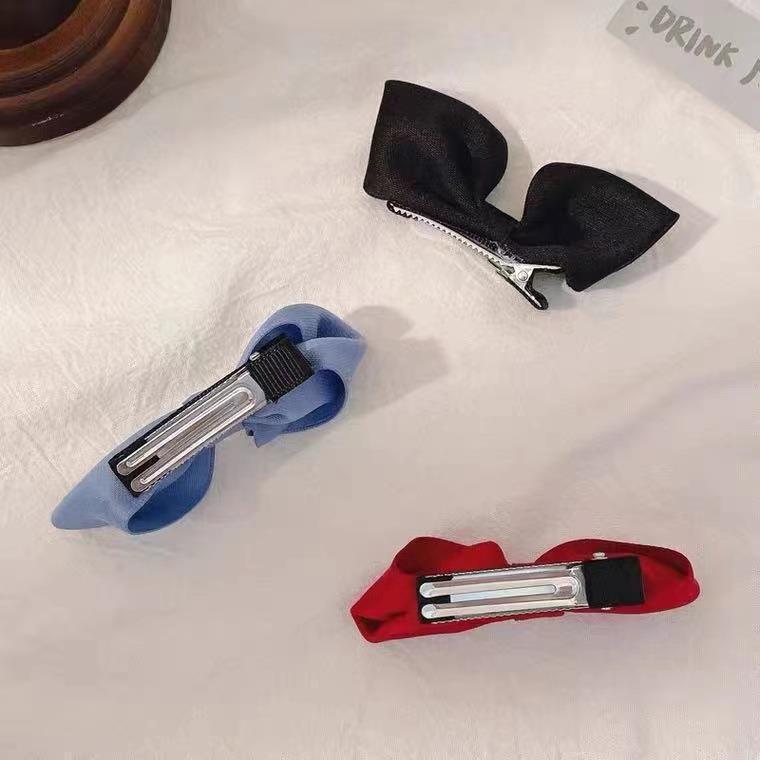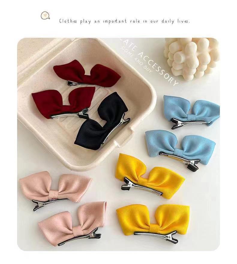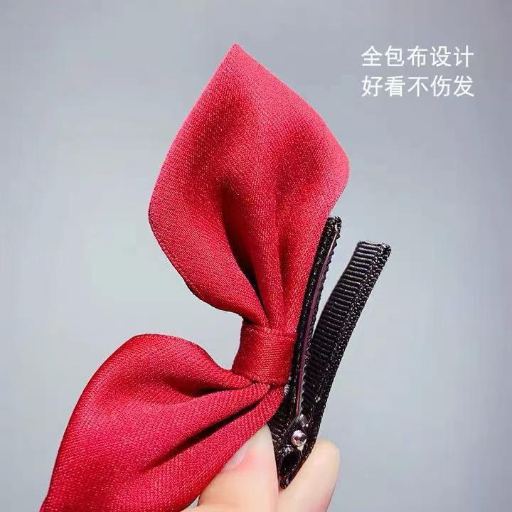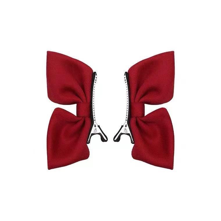 韩版蝴蝶结发夹儿童立体布艺褶皱可爱红色小号公主系侧边对夹发饰
