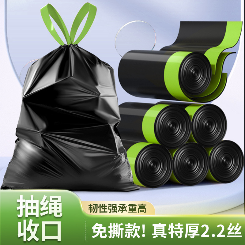 抽绳垃圾袋 黑色手提式中大号厨房家用加厚免撕一次性塑料袋