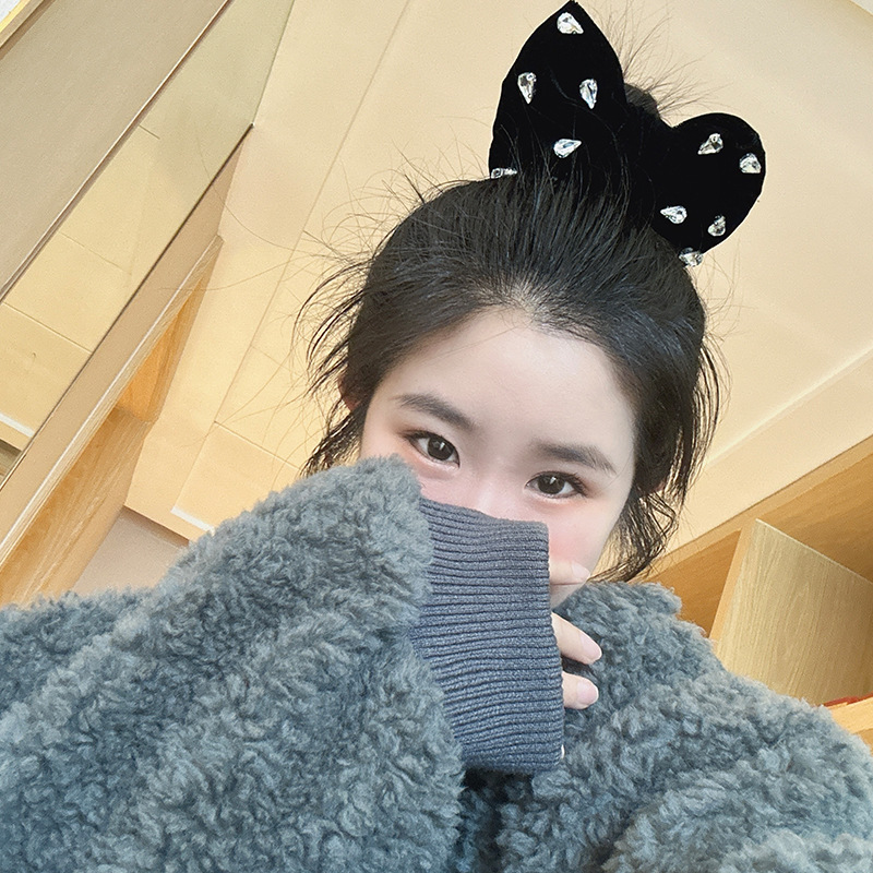 气质奢华水钻丝绒蝴蝶结发绳高级感少女大肠发圈复古百搭扎发头饰