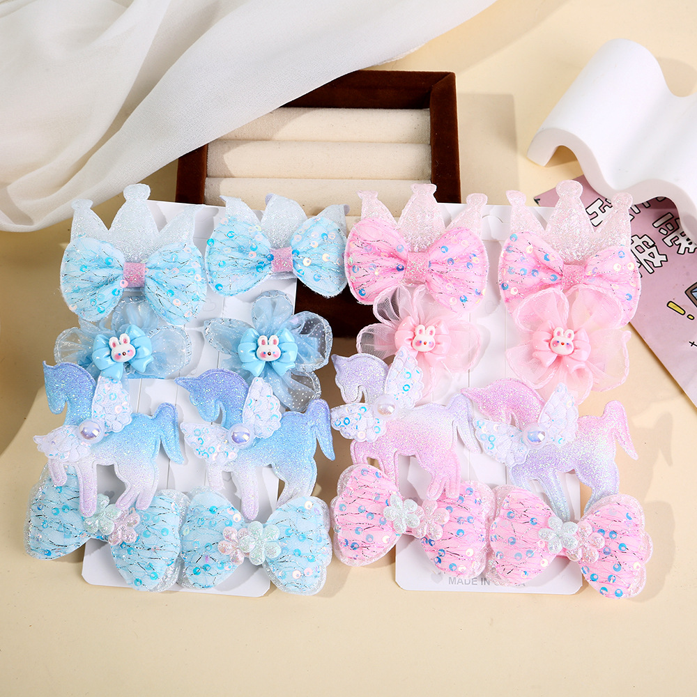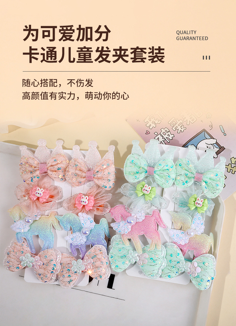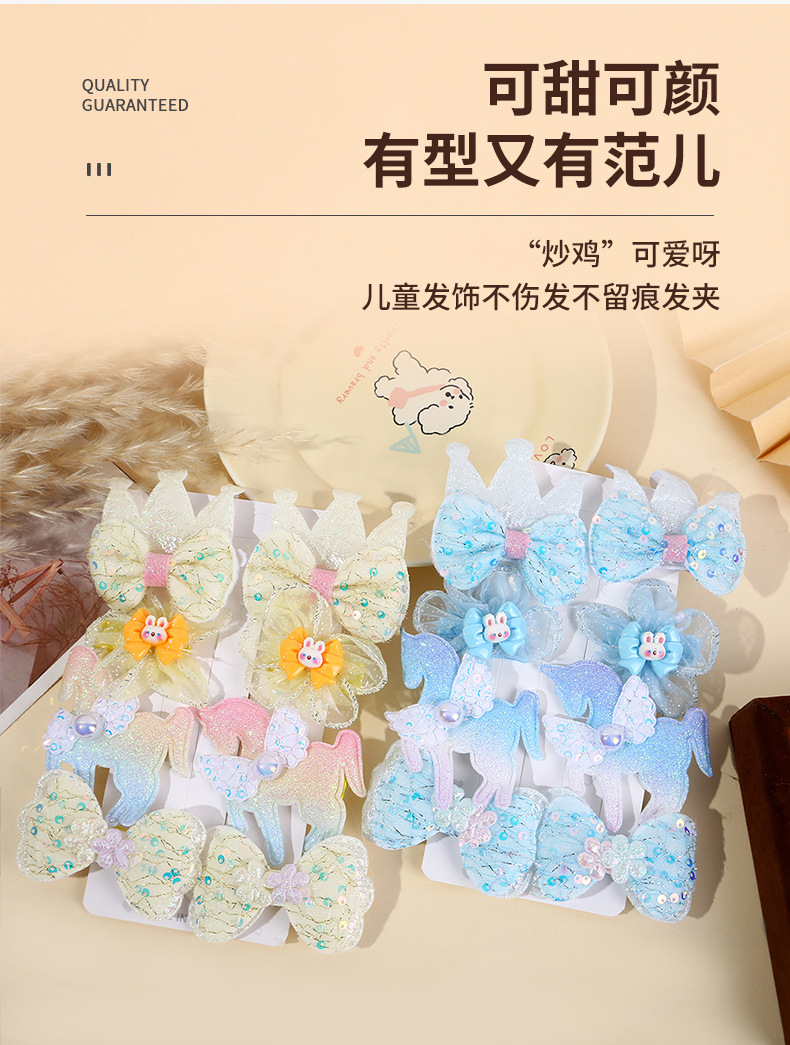 儿童蝴蝶结花朵发夹头饰宝宝布艺蕾丝刘海夹女童公主不伤发对夹