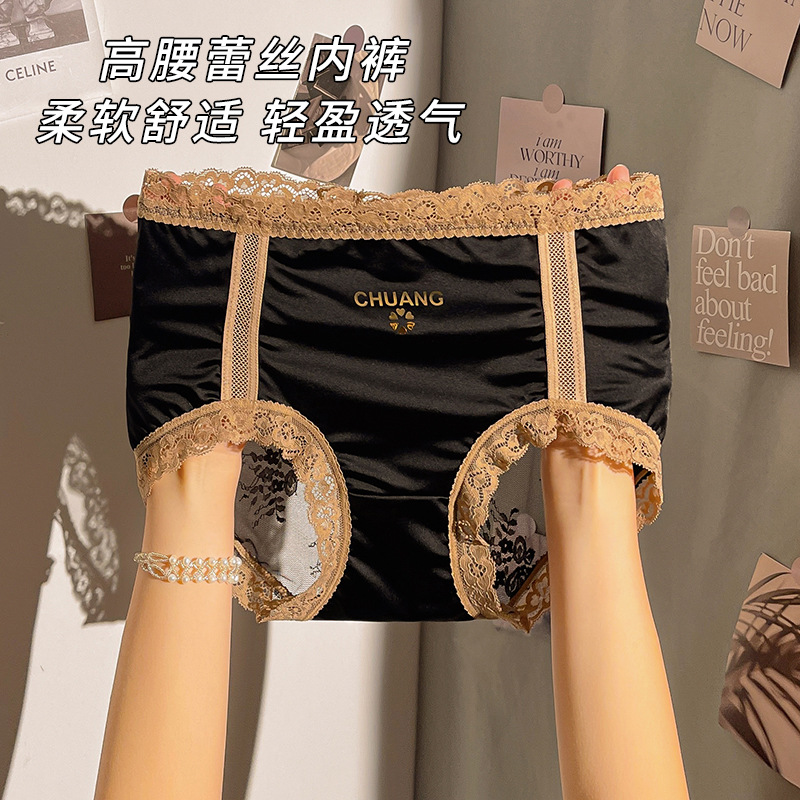 内裤女冰丝中高腰大码收腹提臀抗菌纯棉裆透气性感蕾丝女三角内裤