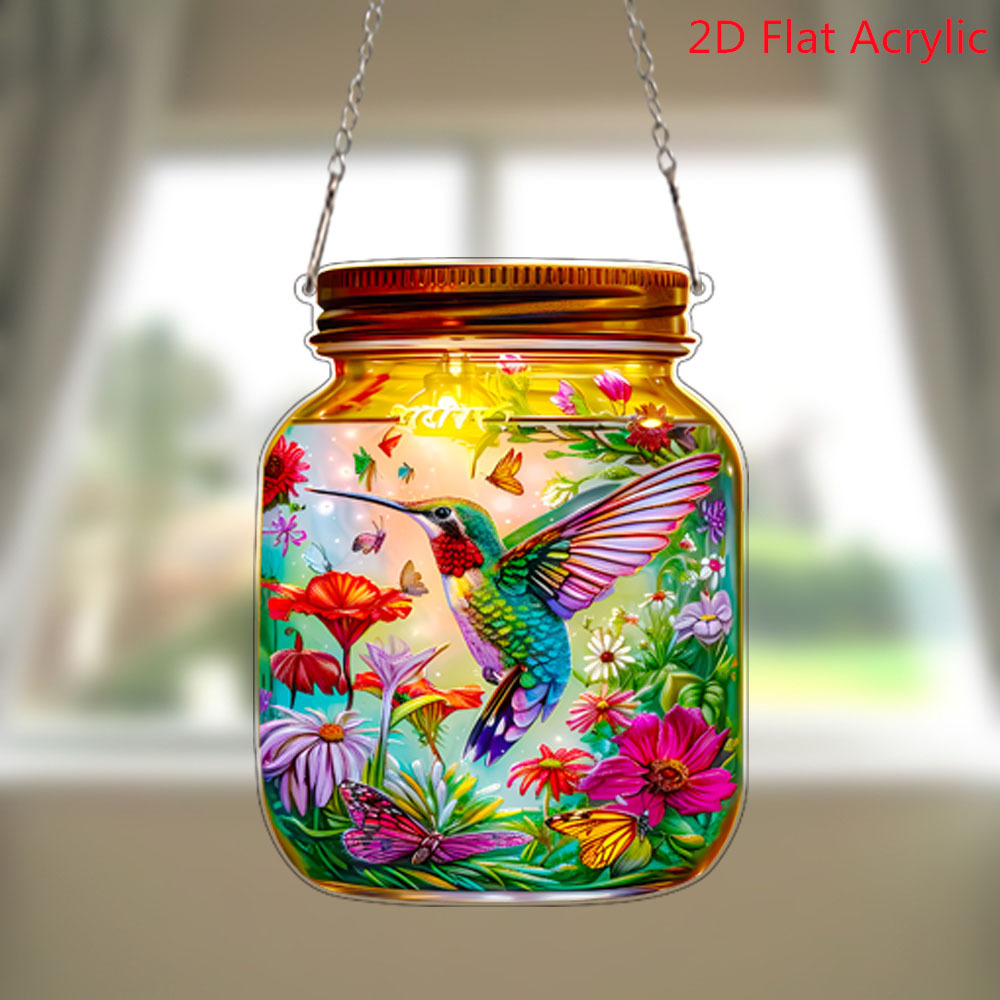 跨境卡通小鸟花园玻璃瓶亚克力窗户门挂艺术节日场景装饰挂件挂饰
