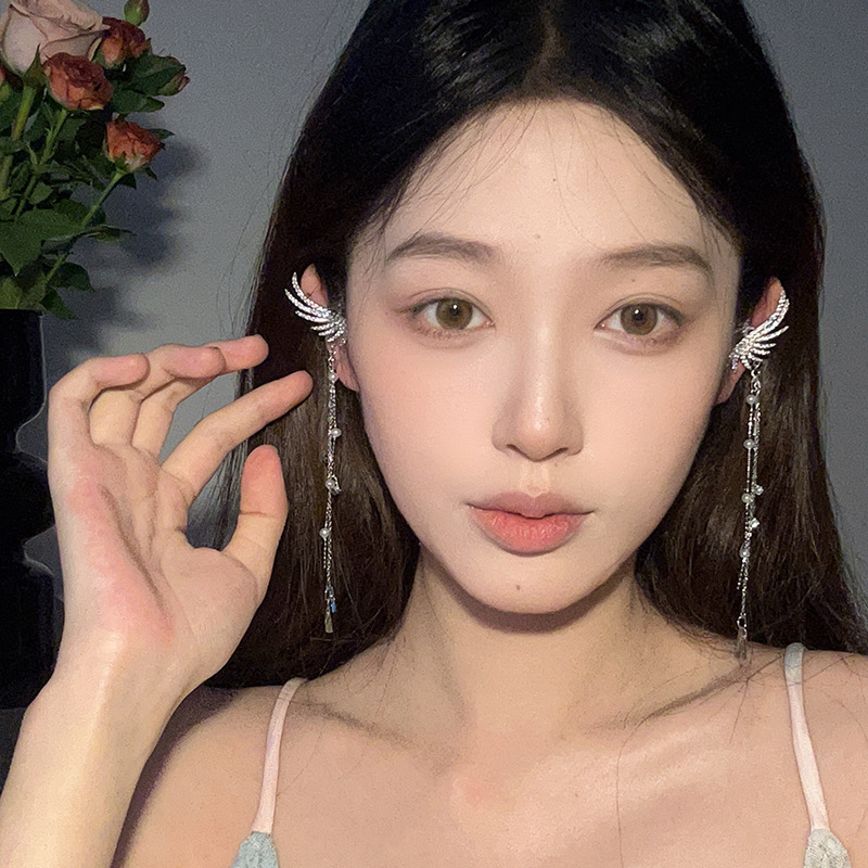 重工高级感锆石翅膀星星长款流苏耳骨夹小众气质轻奢无耳洞耳饰女