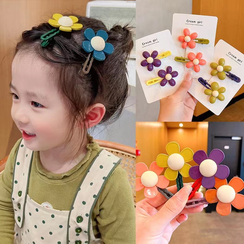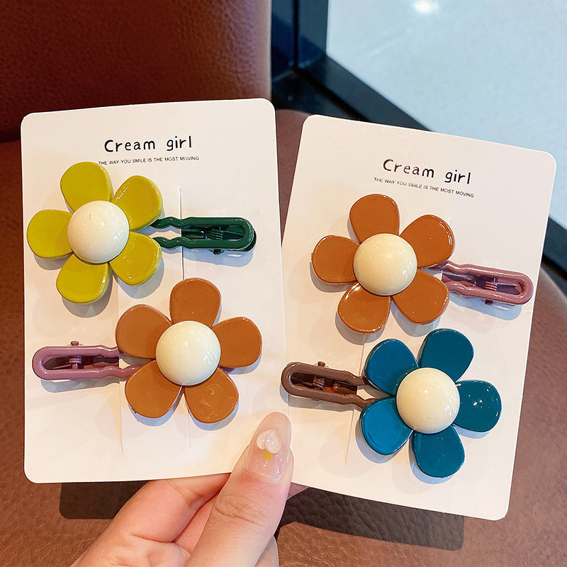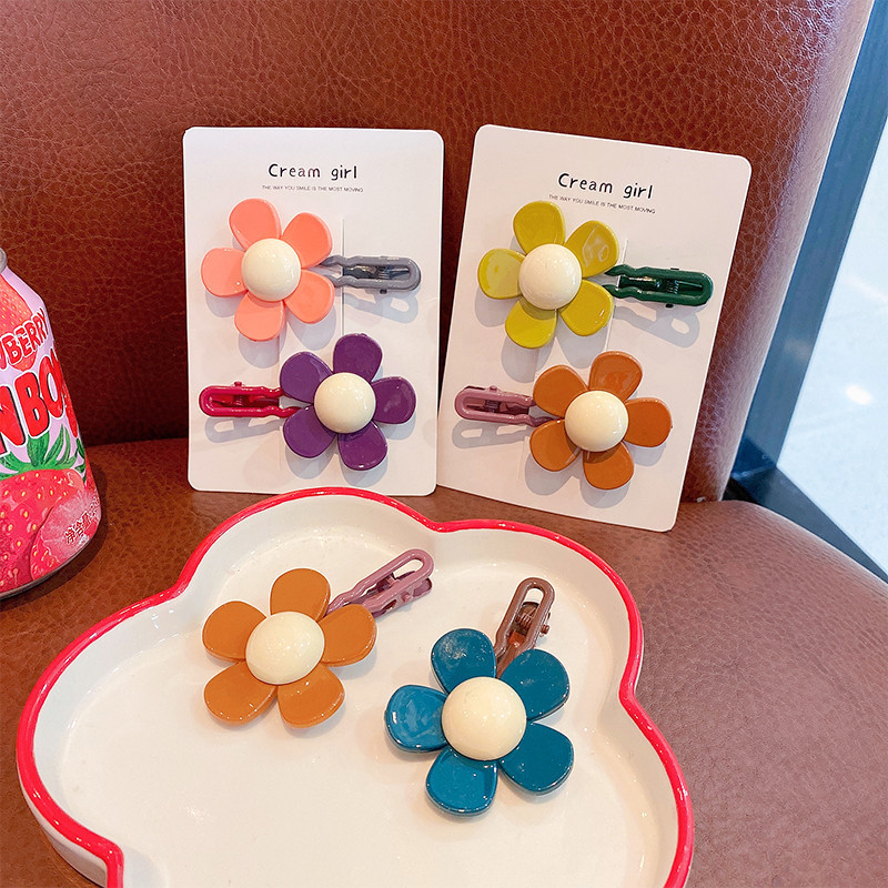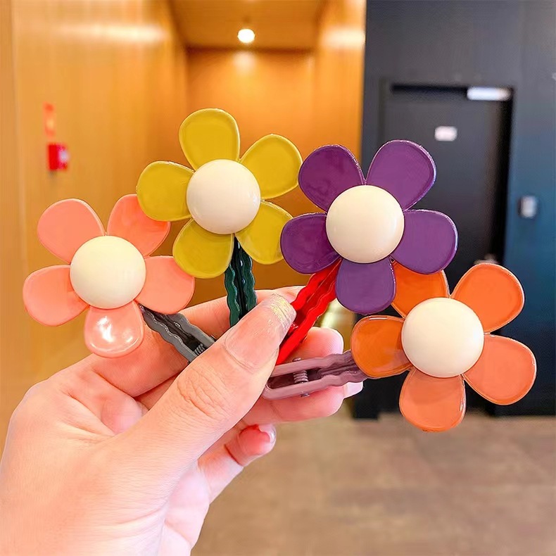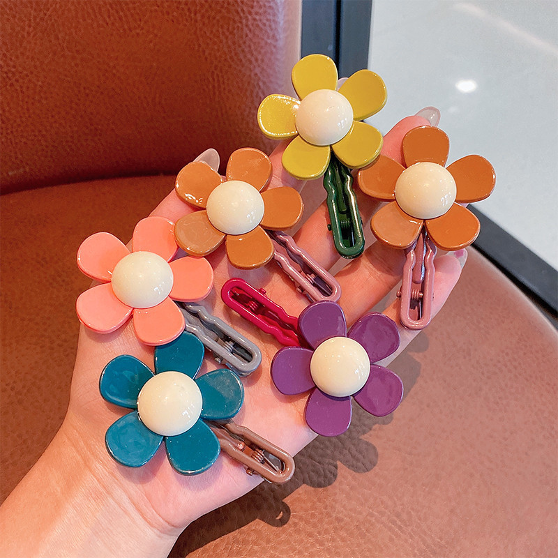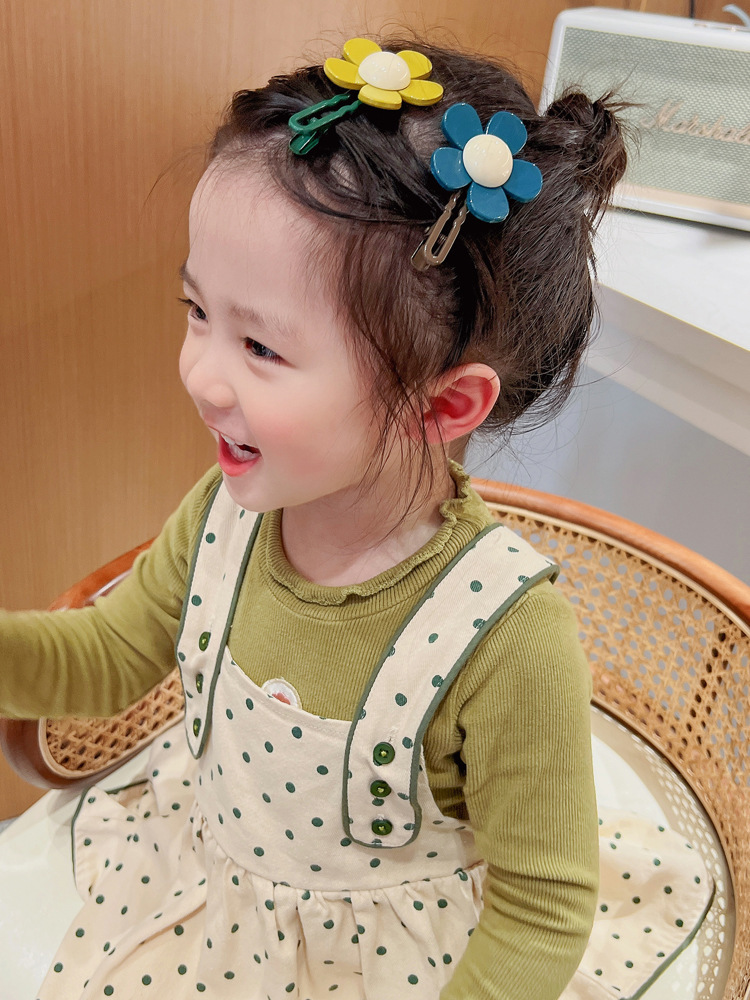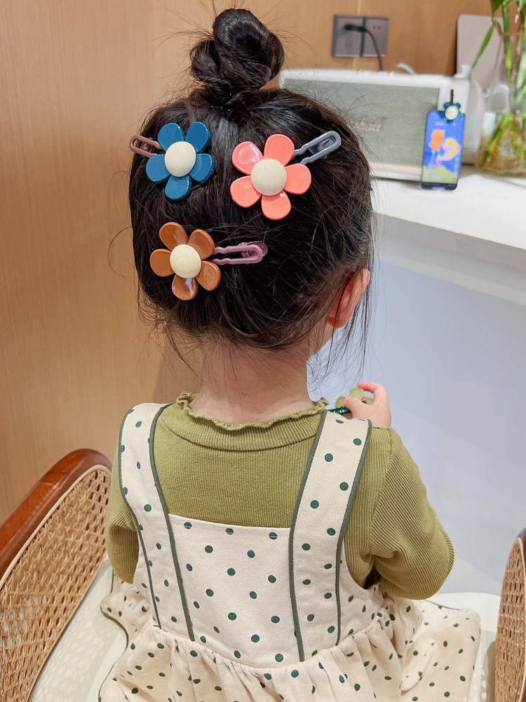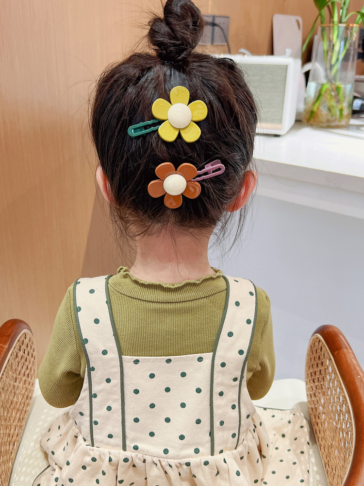 儿童撞色大花朵发夹侧边碎发刘海夹子女孩发饰女童发卡头饰秋