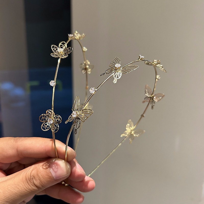 新款时尚新款水钻蝴蝶结发箍镶锆石双层头箍压发镂空蝴蝶潮人发饰
