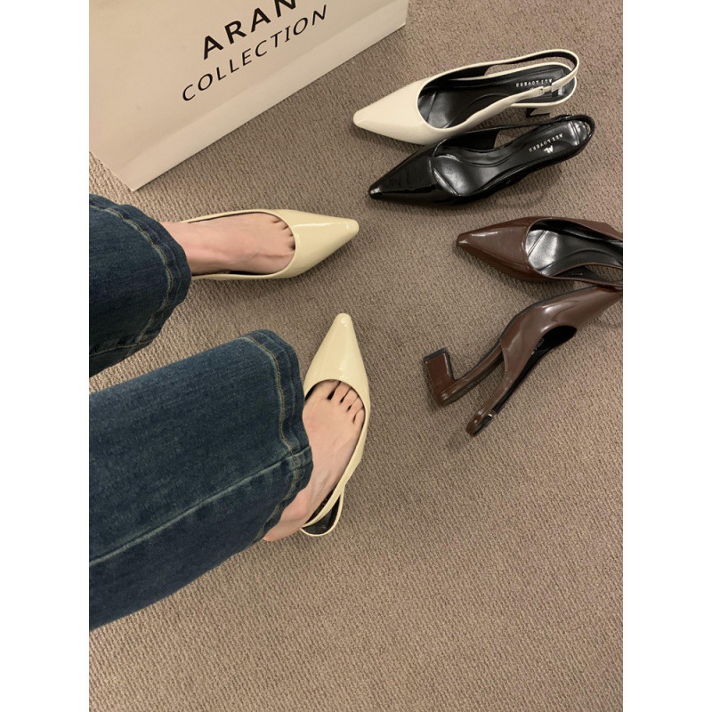 复古尖头配裙子仙女风温柔晚晚鞋粗跟包头凉鞋女后空高跟鞋单跨境