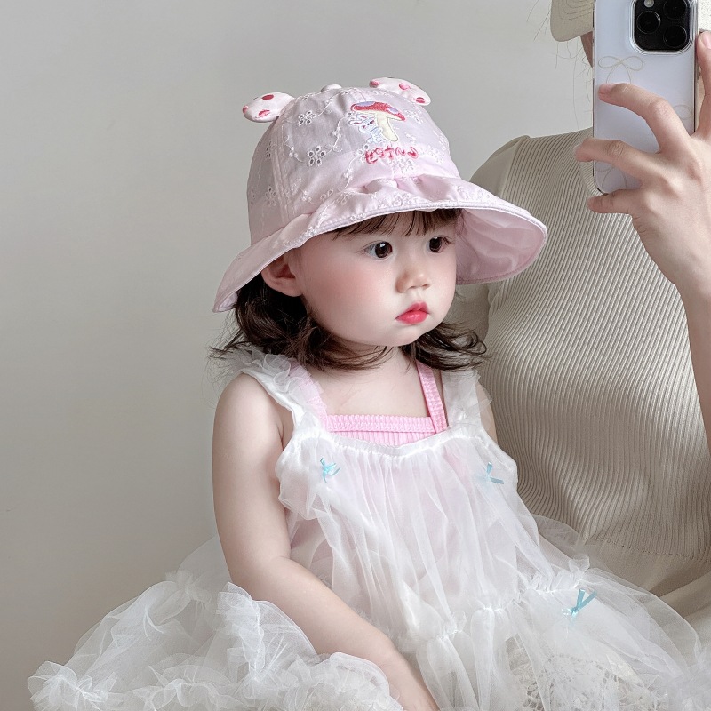 宝宝防晒帽春夏季大檐婴儿渔夫帽可爱蘑菇兔户外男女儿童遮阳凉帽