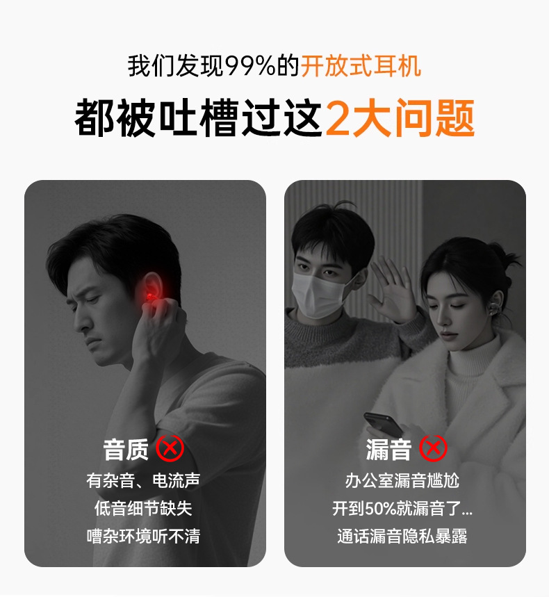 柏林之声OWS蓝牙无线耳机2025新款挂耳式超长续航不入耳降噪运动