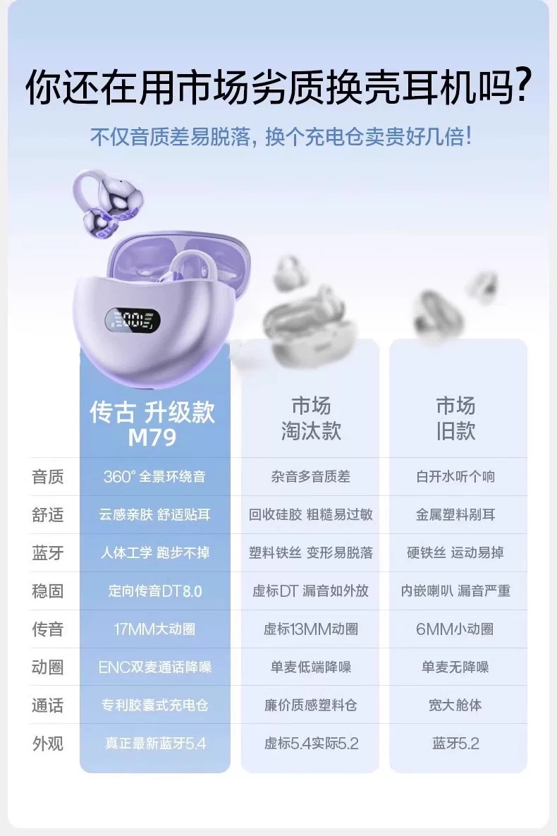 M97新款蓝牙耳机无线不入夹耳式运动骨传导耳机开放式高音质