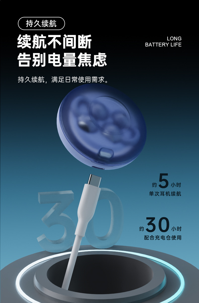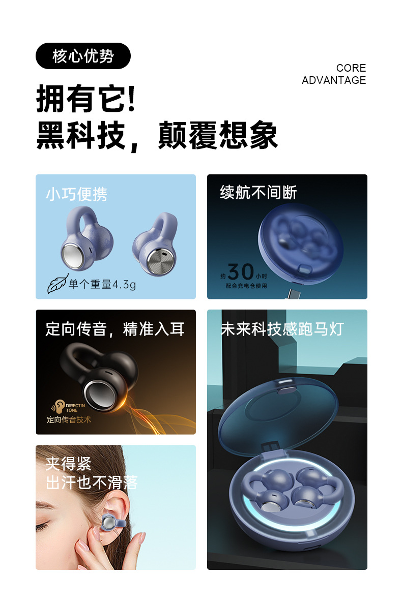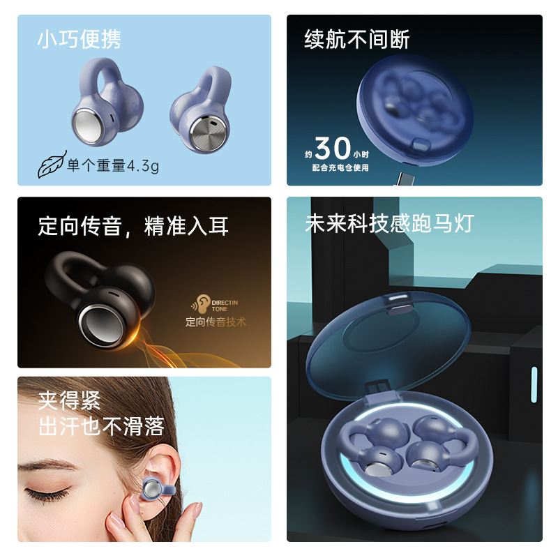 耳夹式无线运动蓝牙耳机长续航大电量炫酷跑马灯立体声2025新款