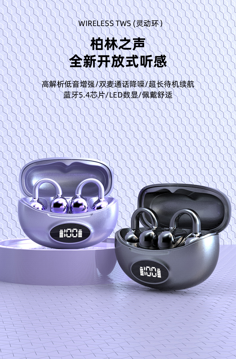 新款蓝牙耳机TWS耳夹式5.4数显高音质长续航私模TS62无线耳机