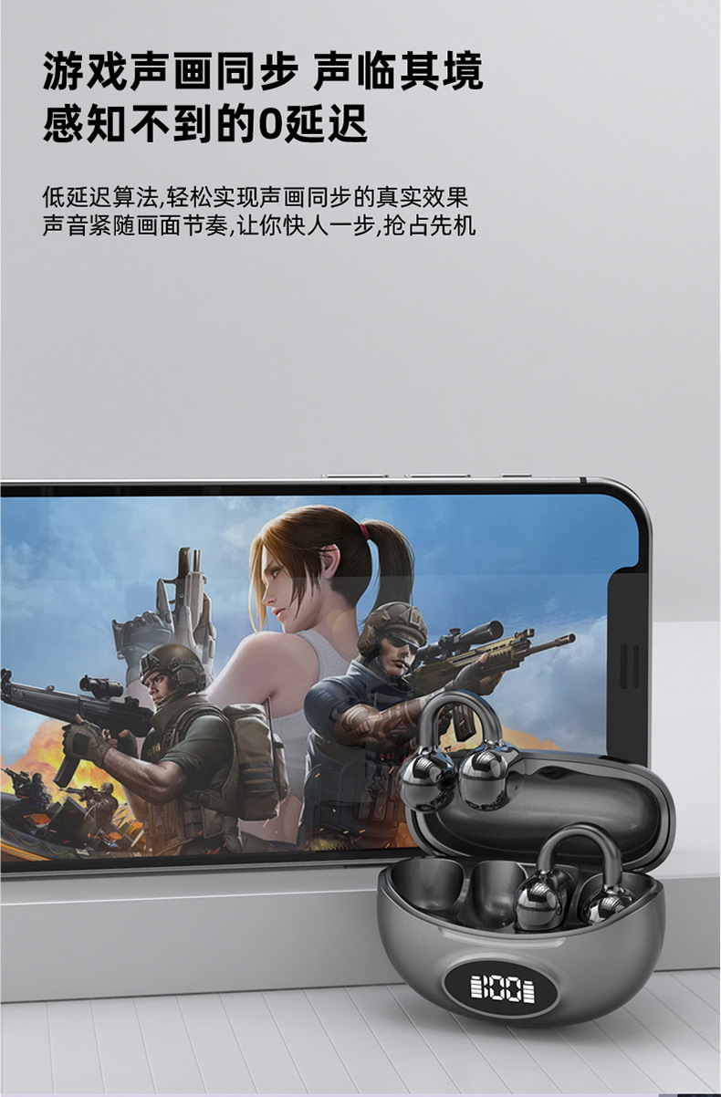 YX09真无线蓝牙耳机耳夹式游戏运动超长续航超低延迟