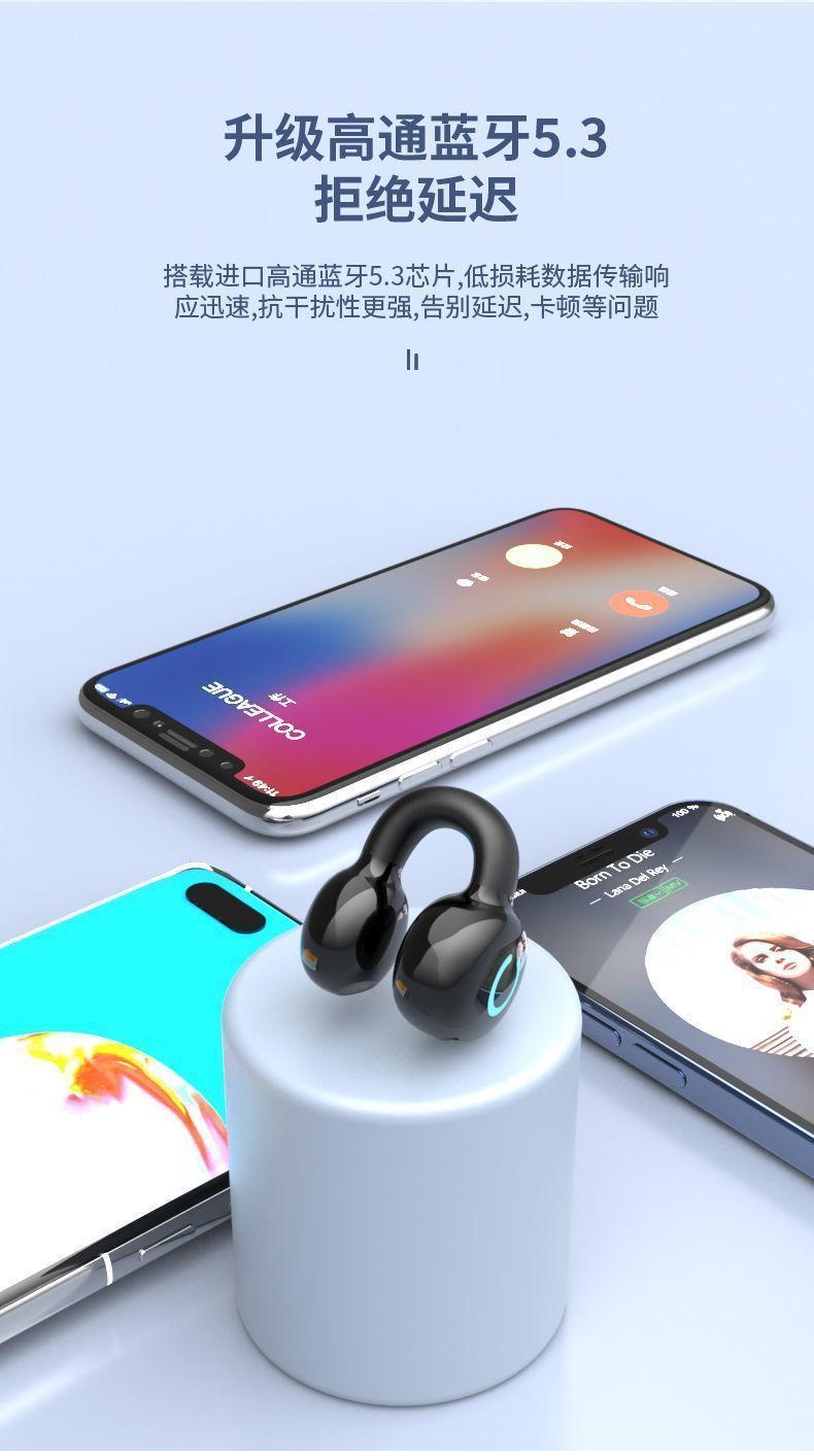 通数显单左耳挂蓝牙耳机超长续航按键版OWS不入耳传导运动无线