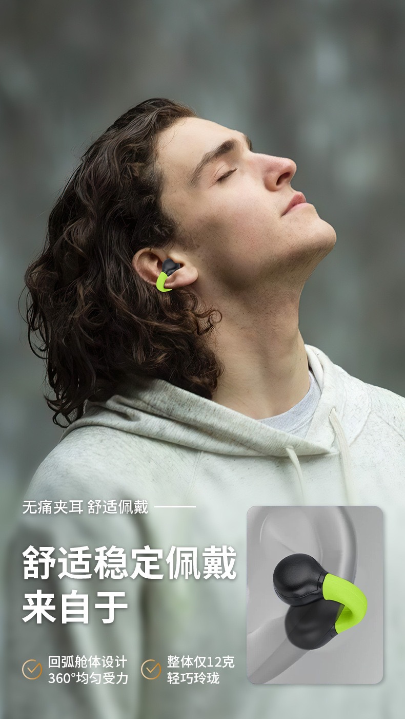2025新款骨传导不入耳蓝牙耳机耳夹式超长续航降噪运动听歌高音质
