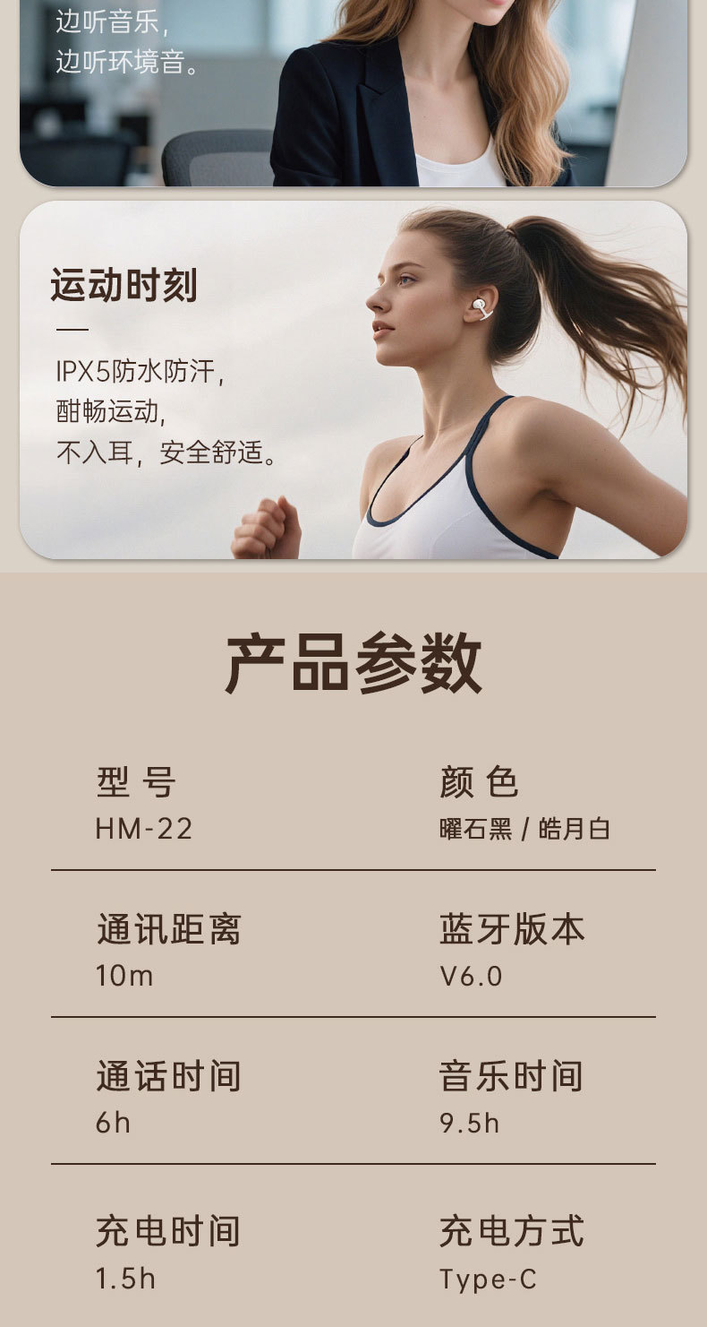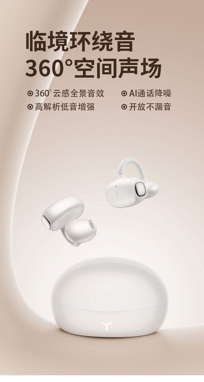 耳夹式无线蓝牙耳机S608开放式不漏音全景环绕超长续航运动耳机