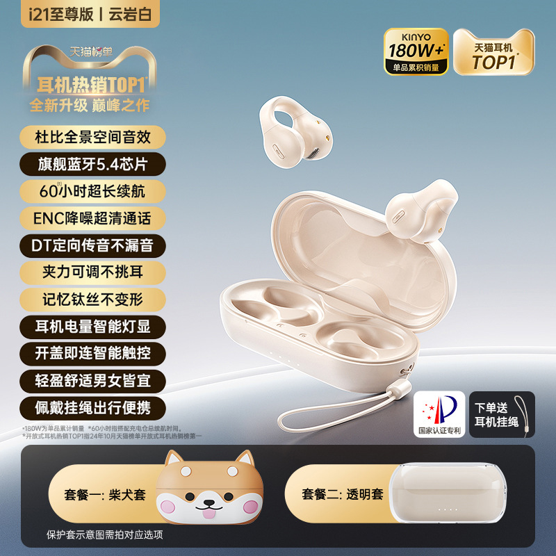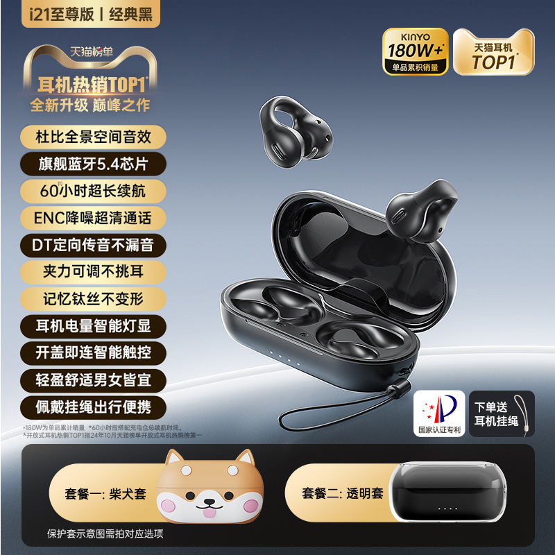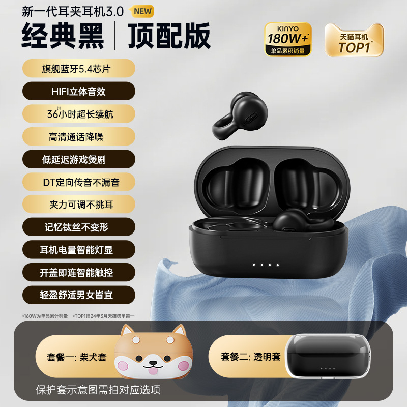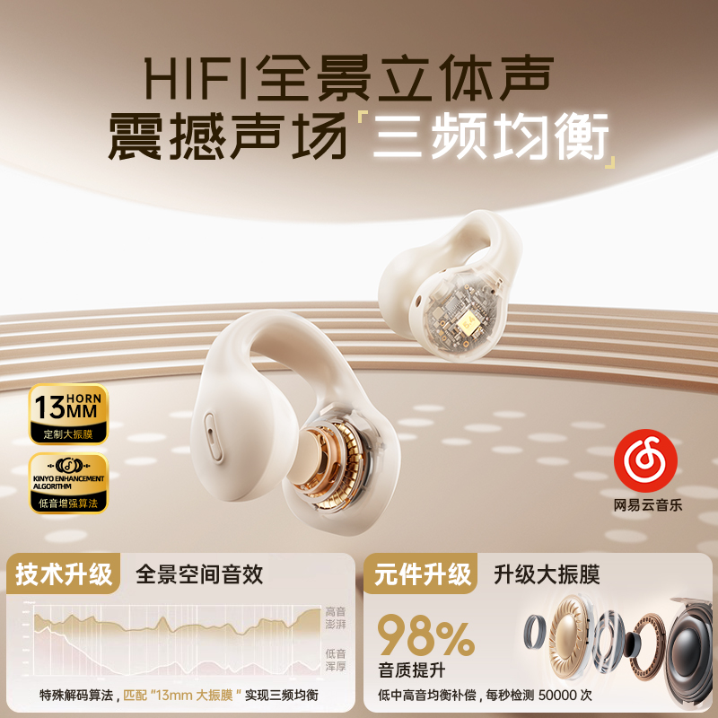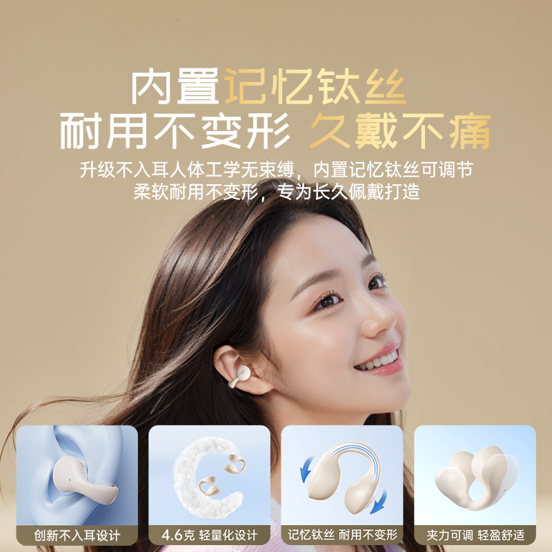 2025新款无线运动蓝牙耳机金运耳夹式不入耳通用男女耳机超长续航