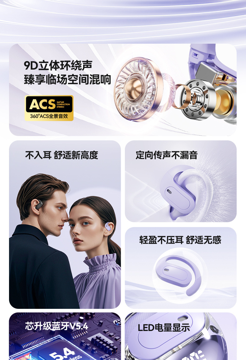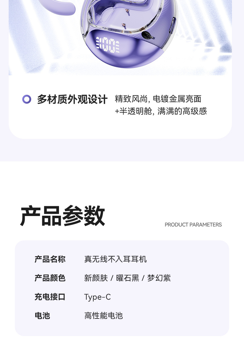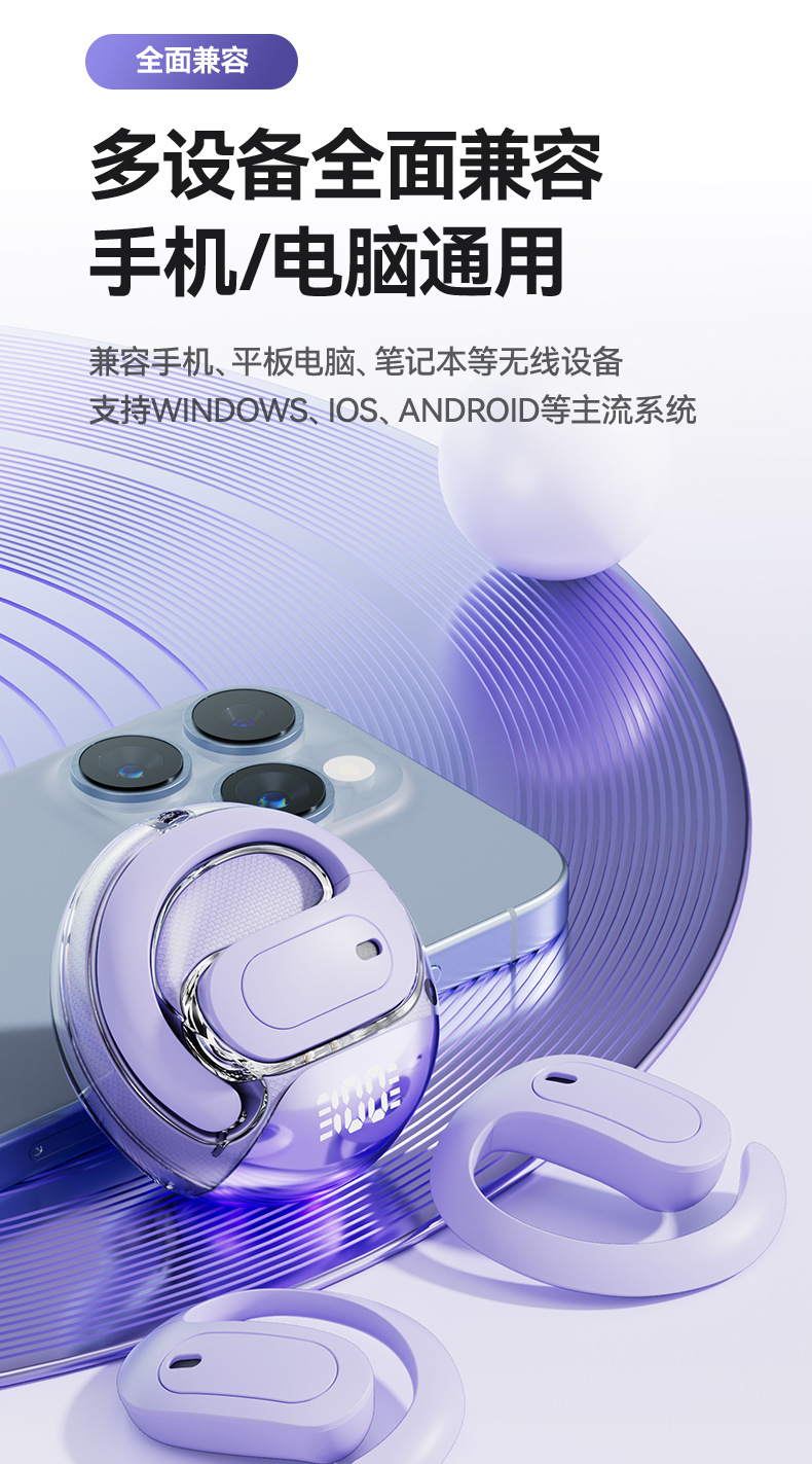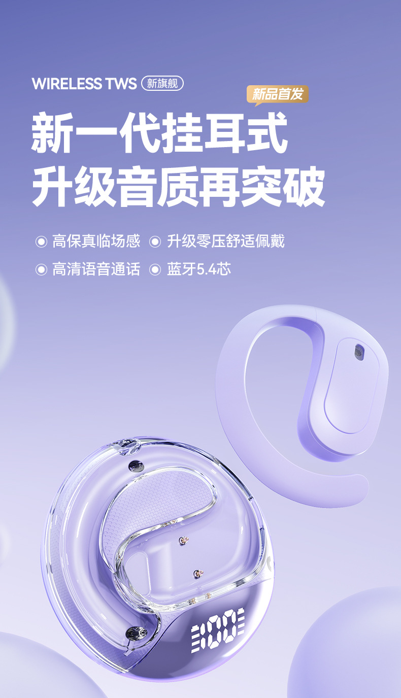 新款耳夹式蓝牙耳机骨传导高音质降噪长续航运动私模通用