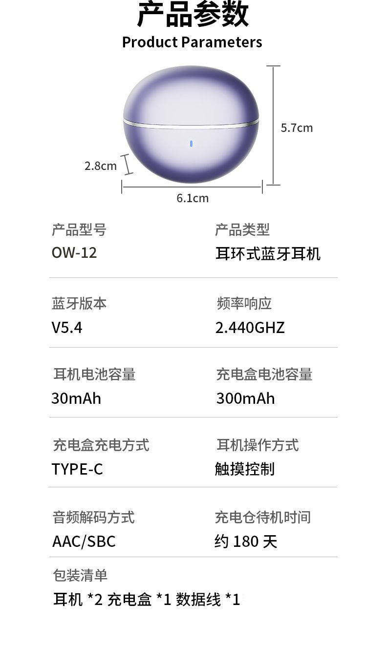 无线蓝牙耳机开放式运动耳夹式超长续航高颜值高音质