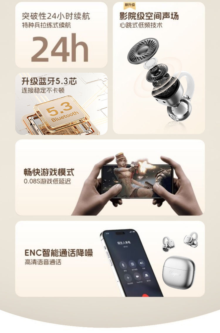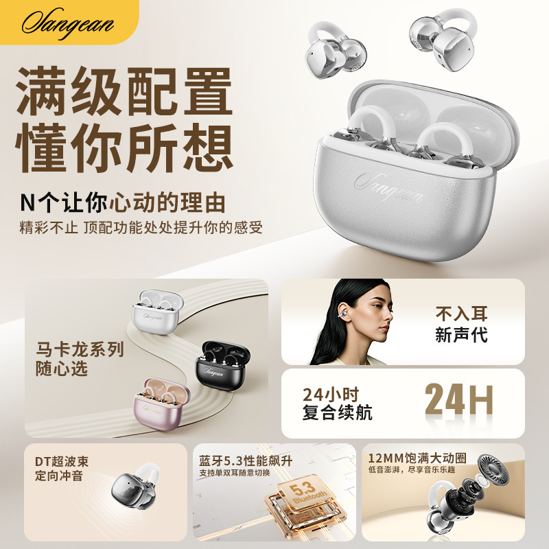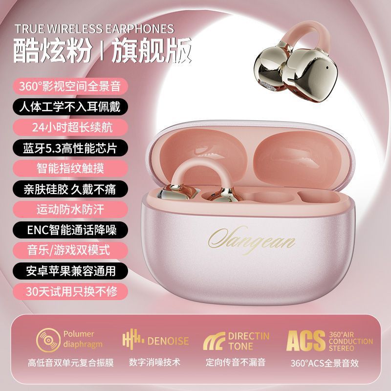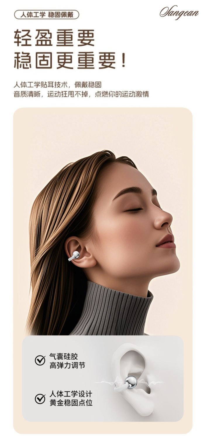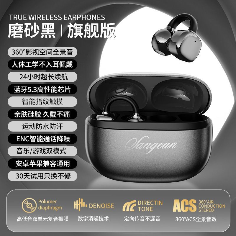 2025年新款骨传导蓝牙耳机耳夹式不入耳超长续航运动跑步降噪