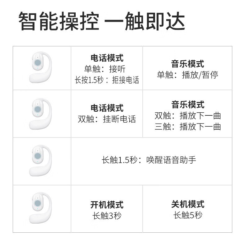无线蓝牙耳塞式耳机单耳不入耳OWS传导车载商务耳夹式不伤长续航