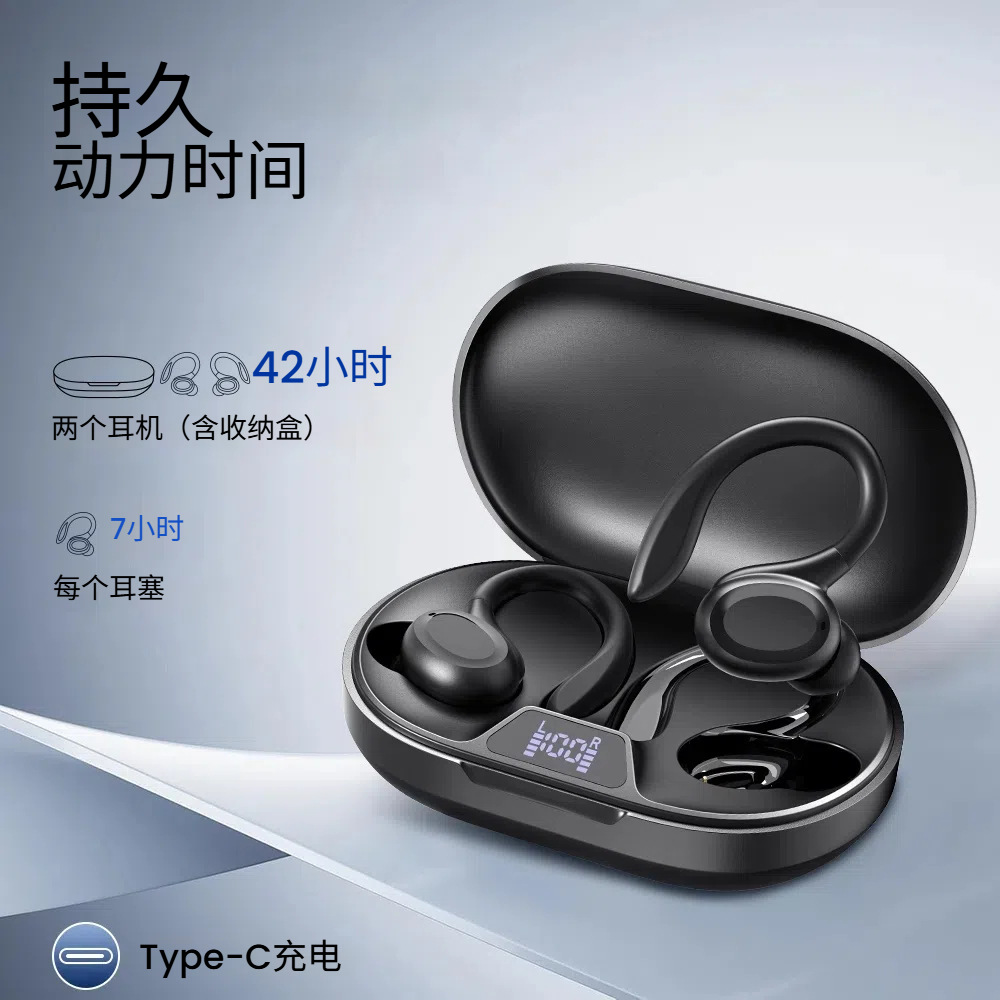 新款降噪入耳真无线5.0蓝牙耳机无痛挂耳式数显运动防汗耳机