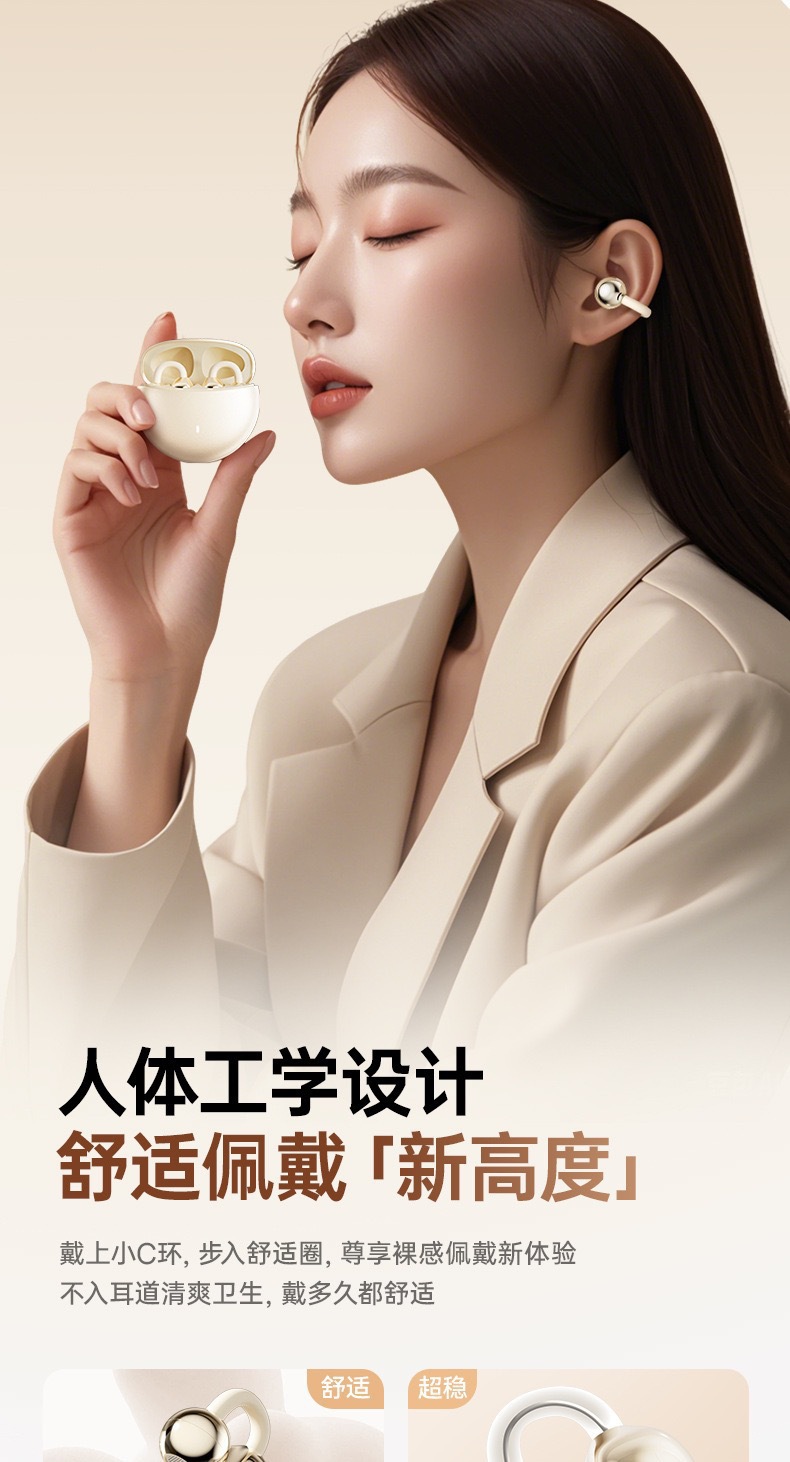 蓝牙耳机夹耳式长续航运动真降噪耳机5.4电竞低延迟