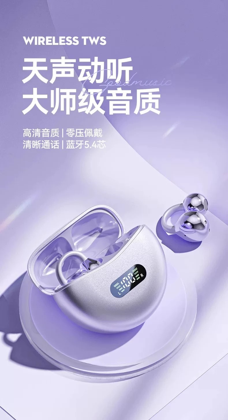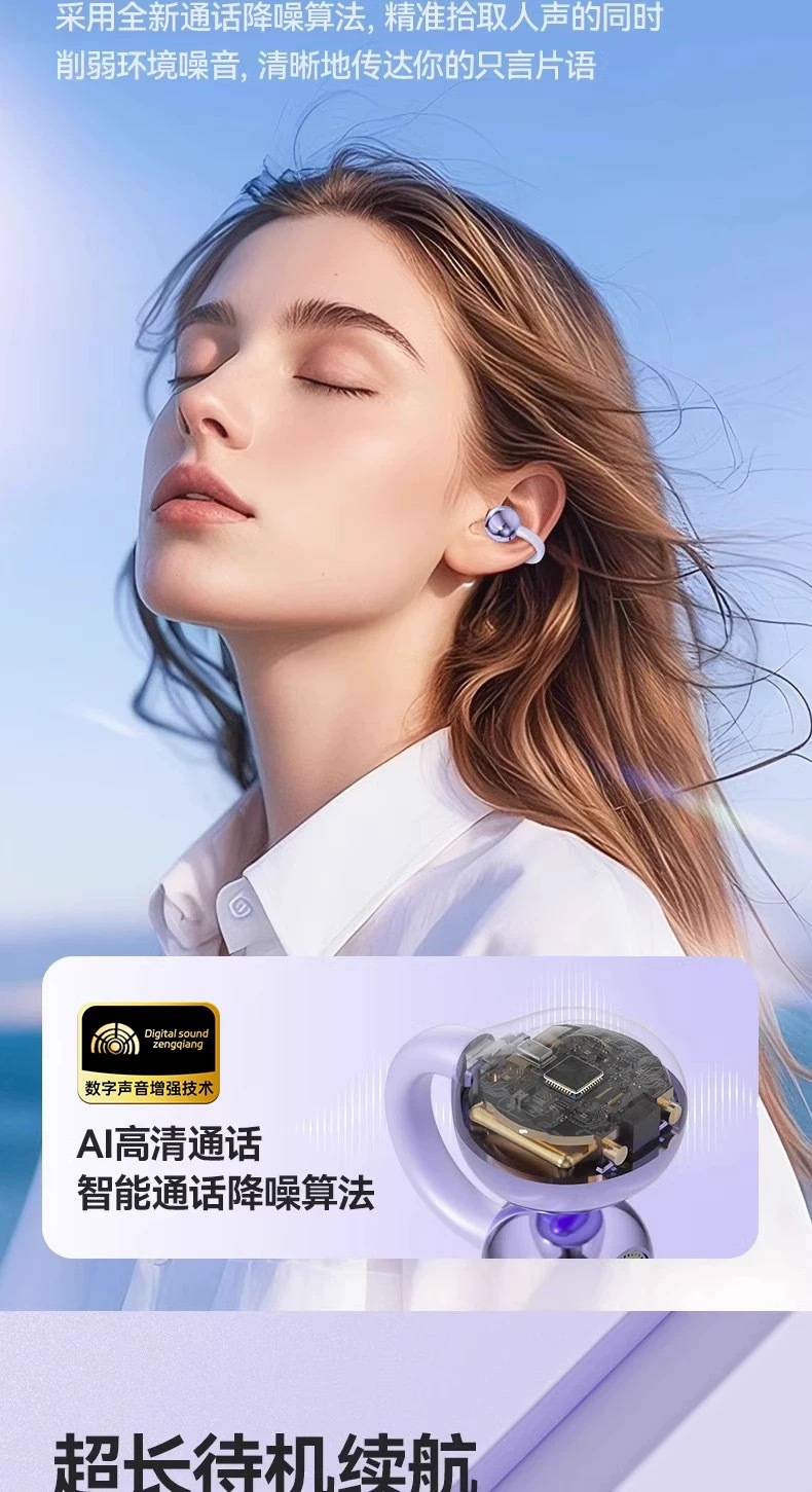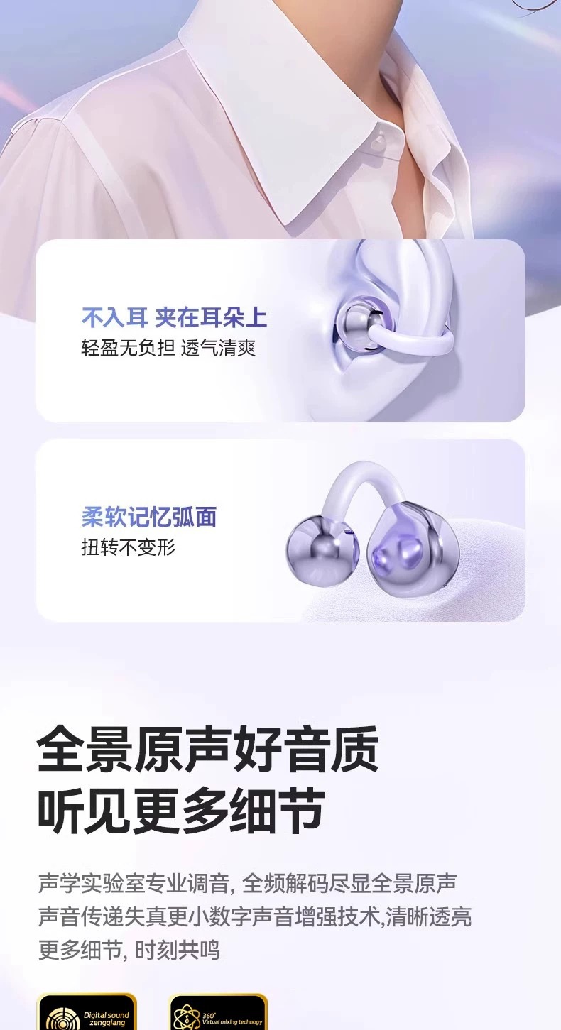 V80耳夹式蓝牙耳机不入耳佩戴运动跑步防水防汗超长待机降噪迷你