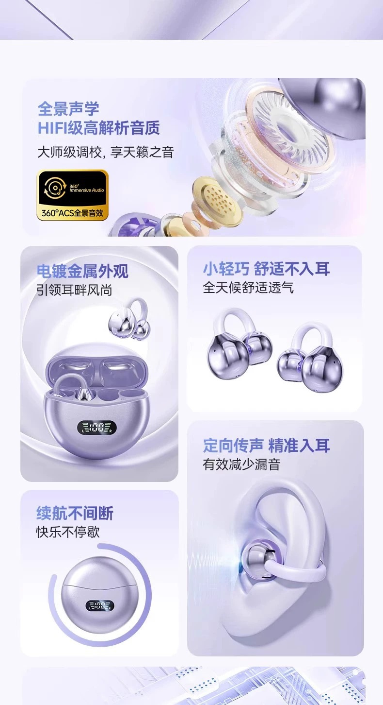 耳夹式无线运动蓝牙耳机长续航大电量炫酷跑马灯立体声2025新款