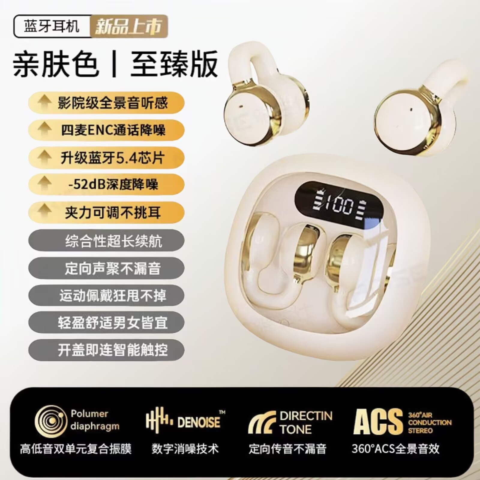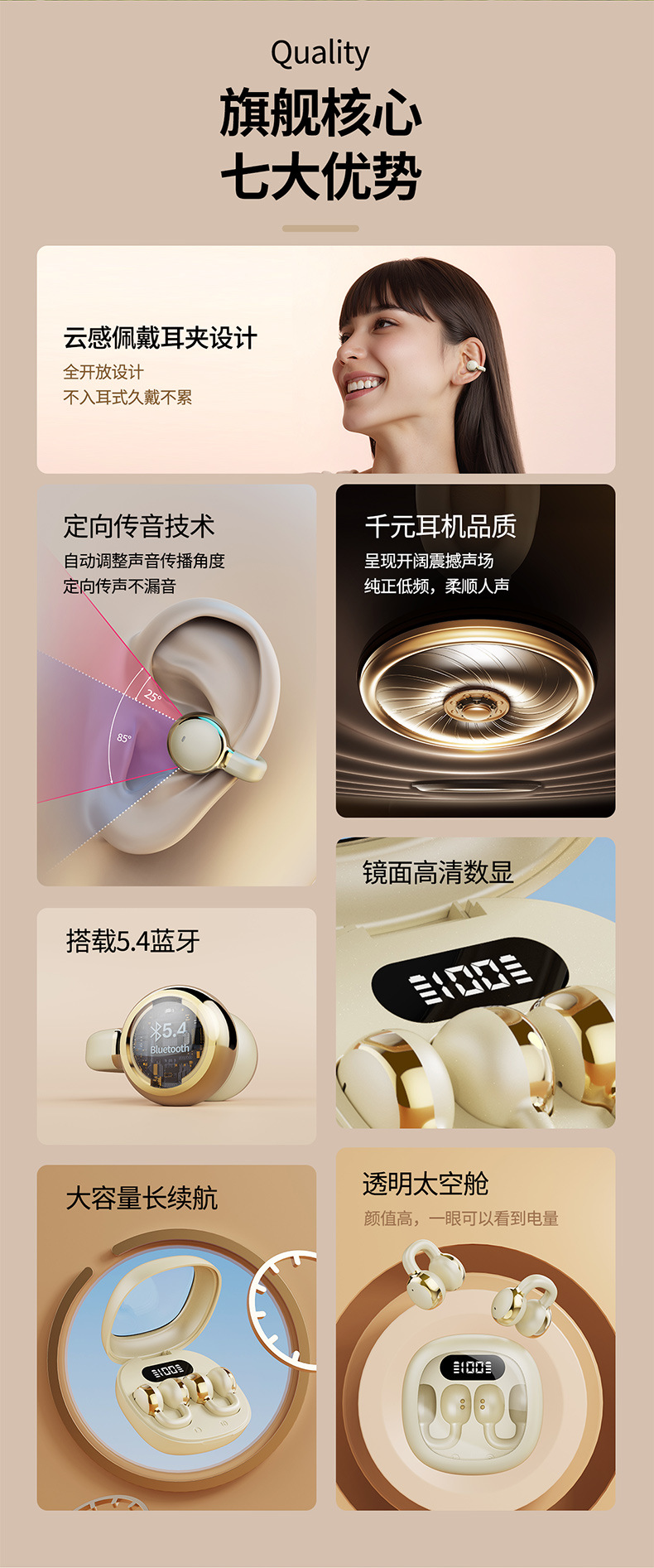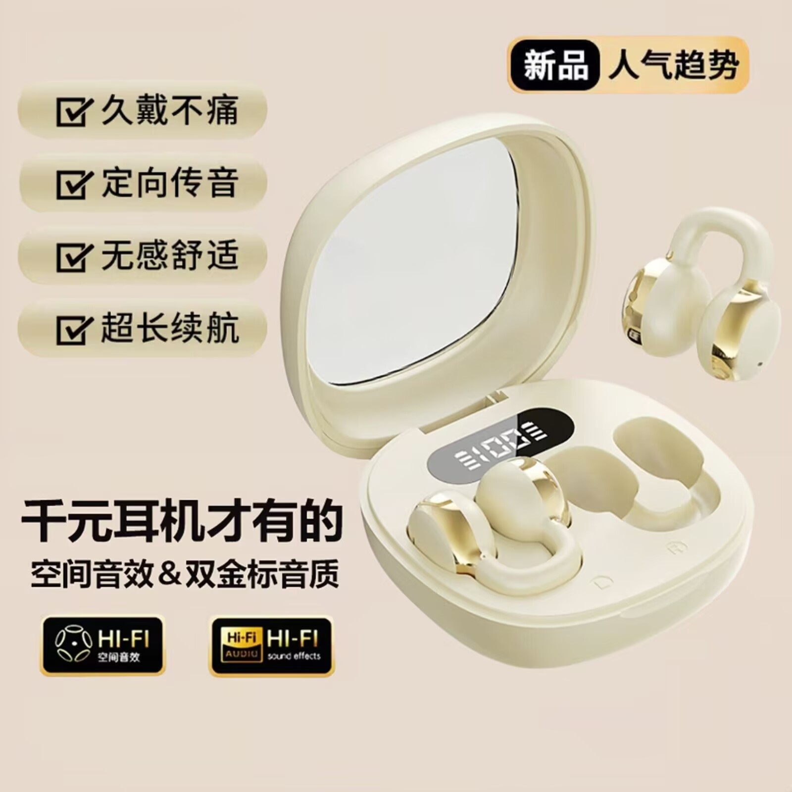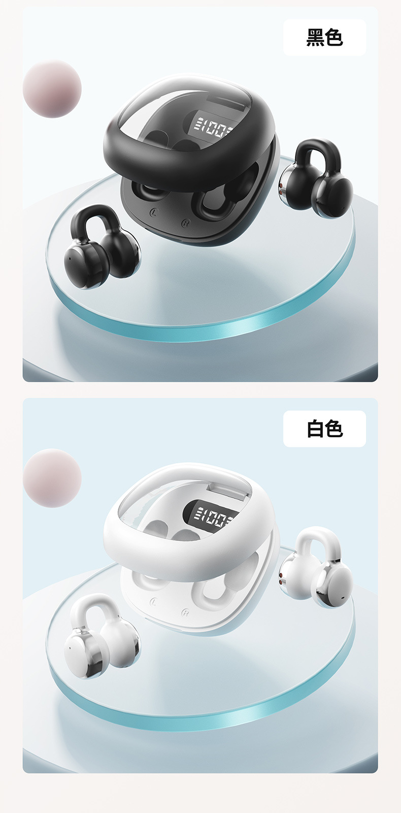 新款蓝牙耳机S6pro数显气传导耳机夹耳式不入耳蓝牙无线耳机