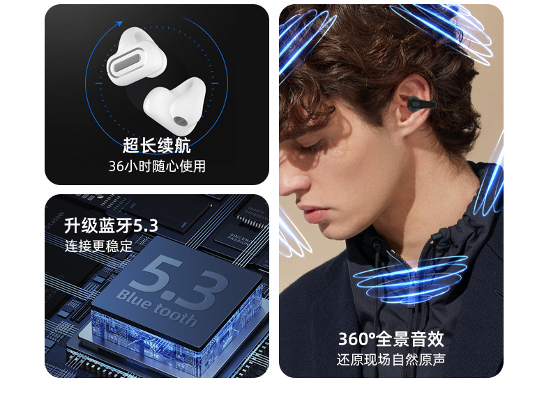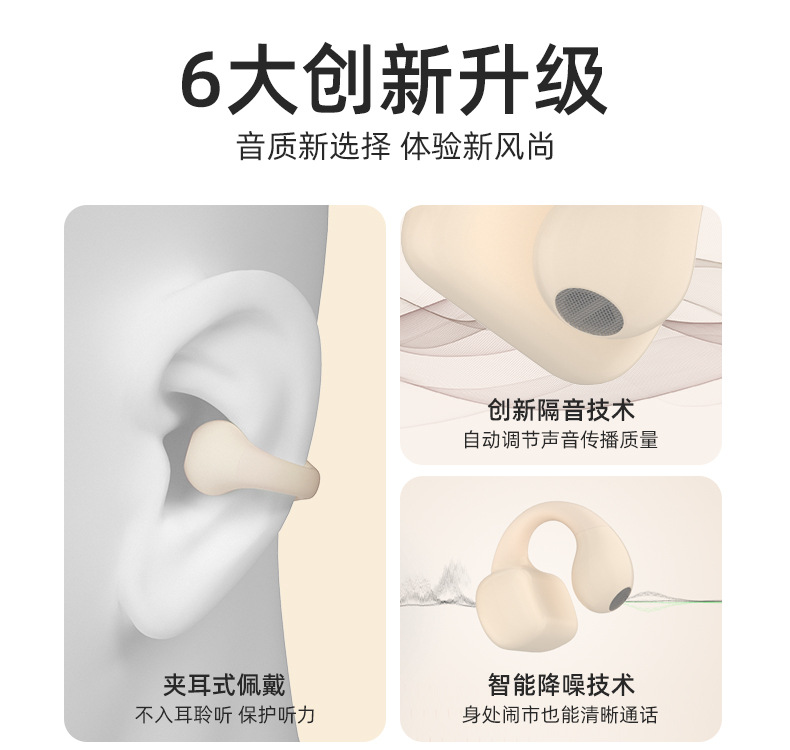 OWS蓝牙耳机气骨传导单耳不入耳夹耳式挂耳式运动续航超长续航
