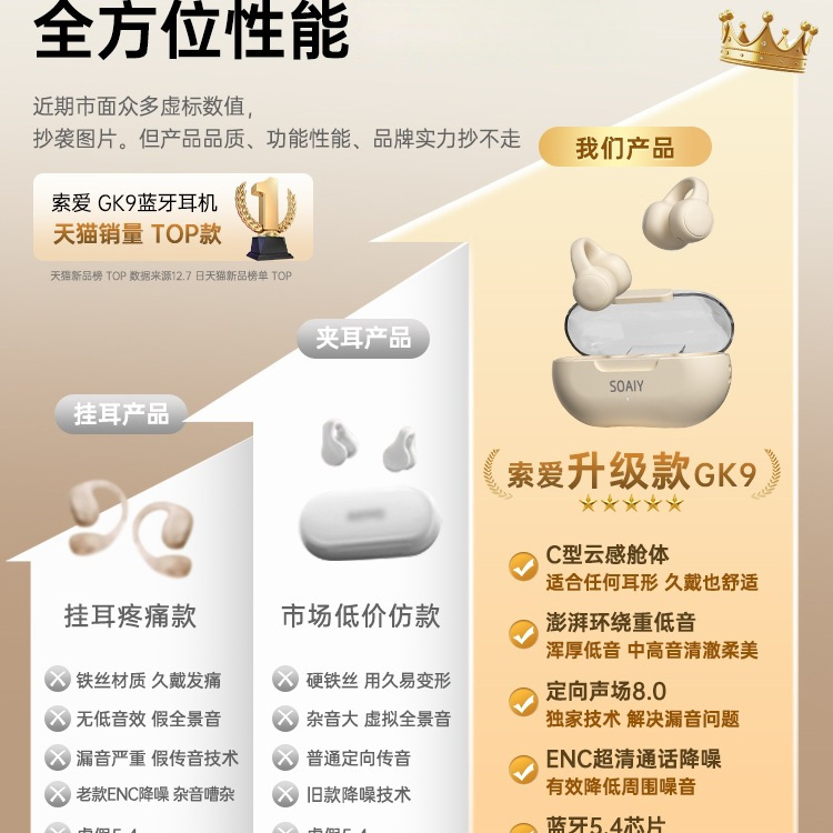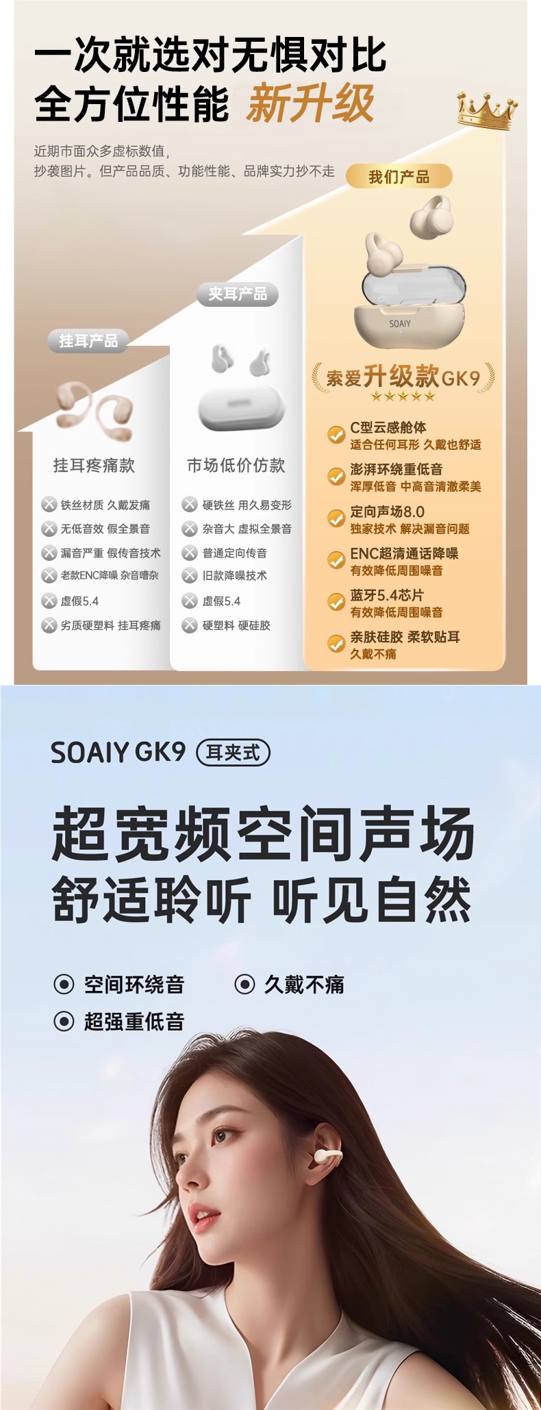 GK9耳夹式蓝牙耳机无线气骨传导开放式运动不入耳2025新款