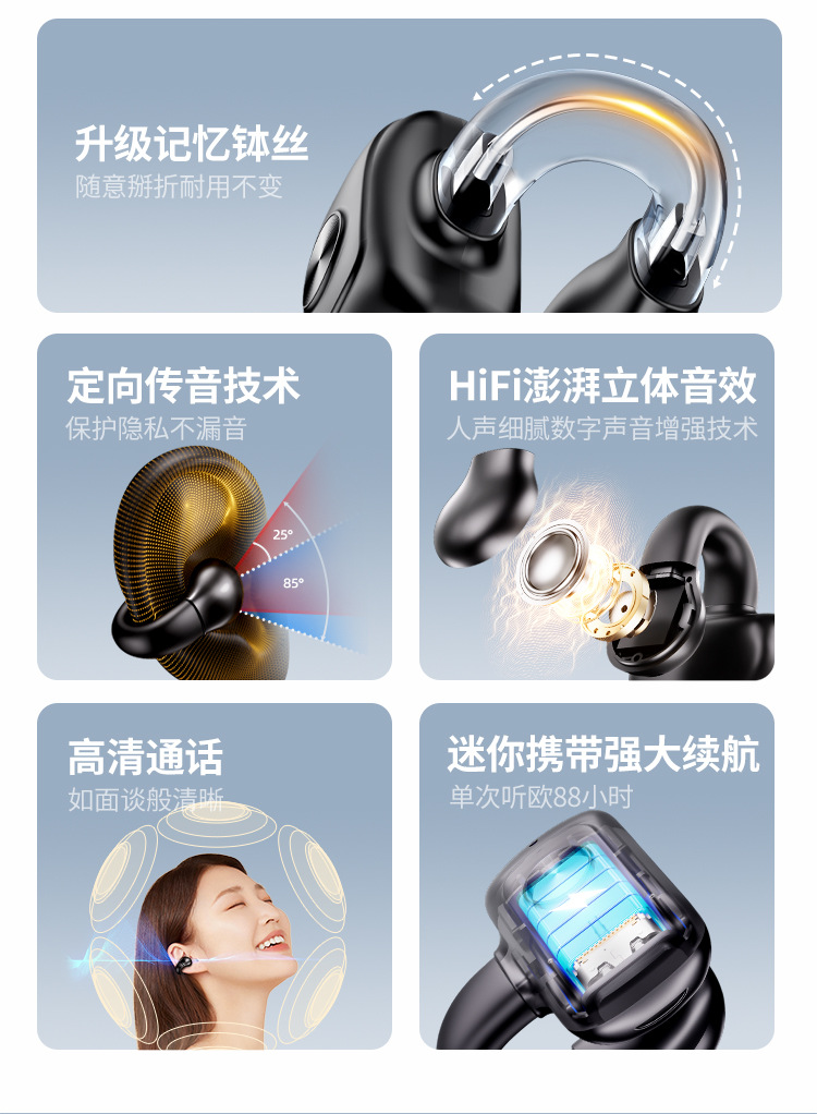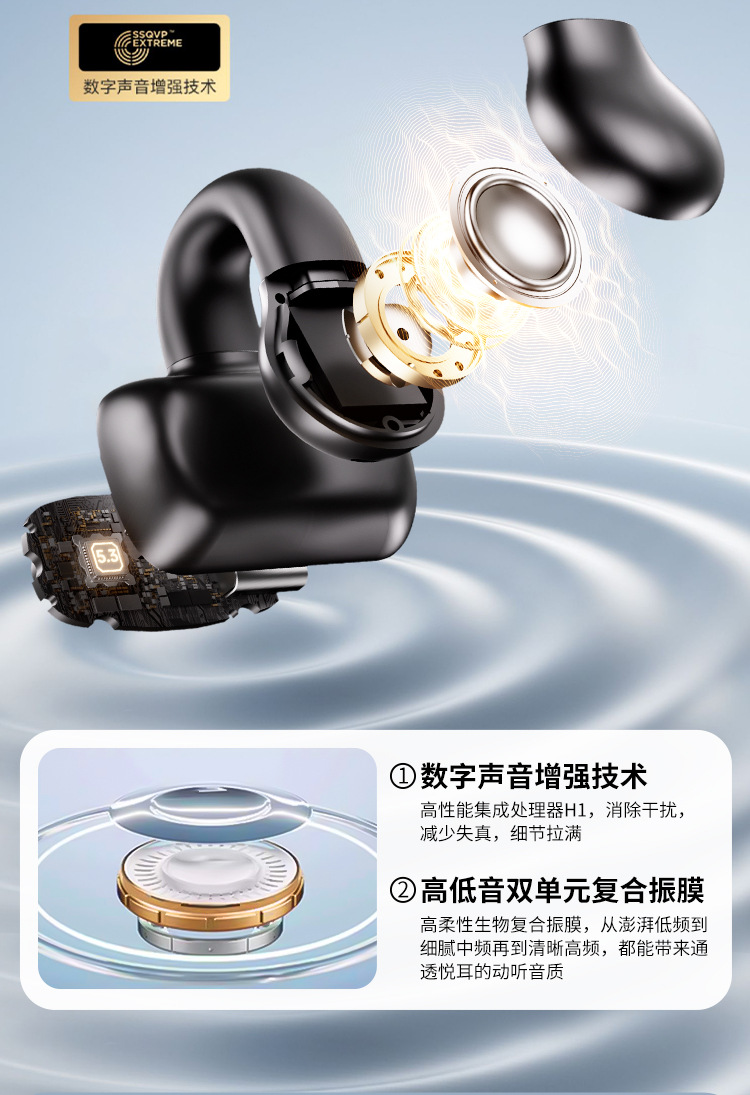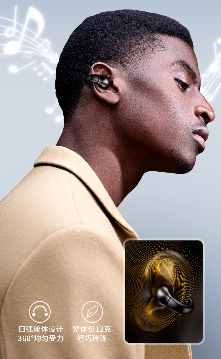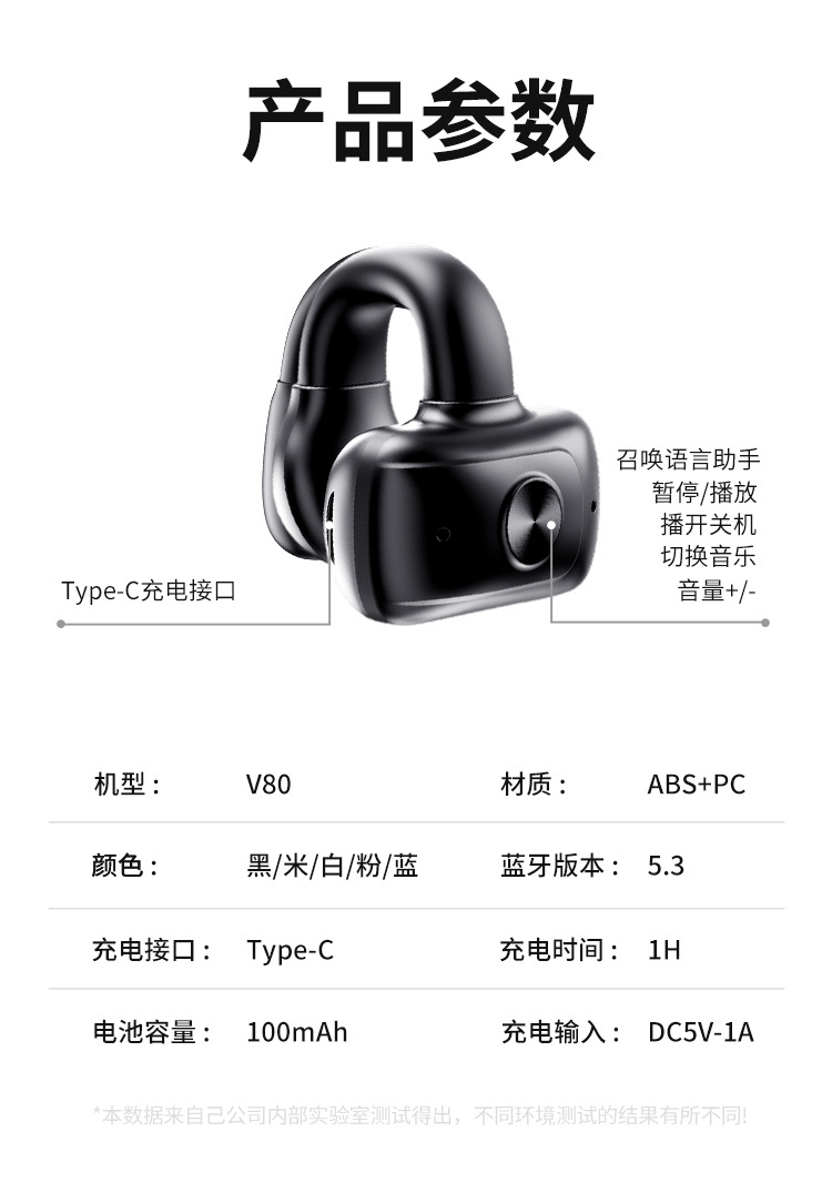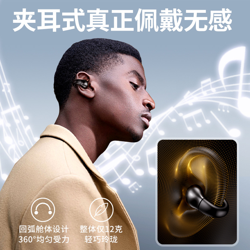 V80耳夹式蓝牙耳机不入耳佩戴运动跑步防水防汗超长待机降噪迷你