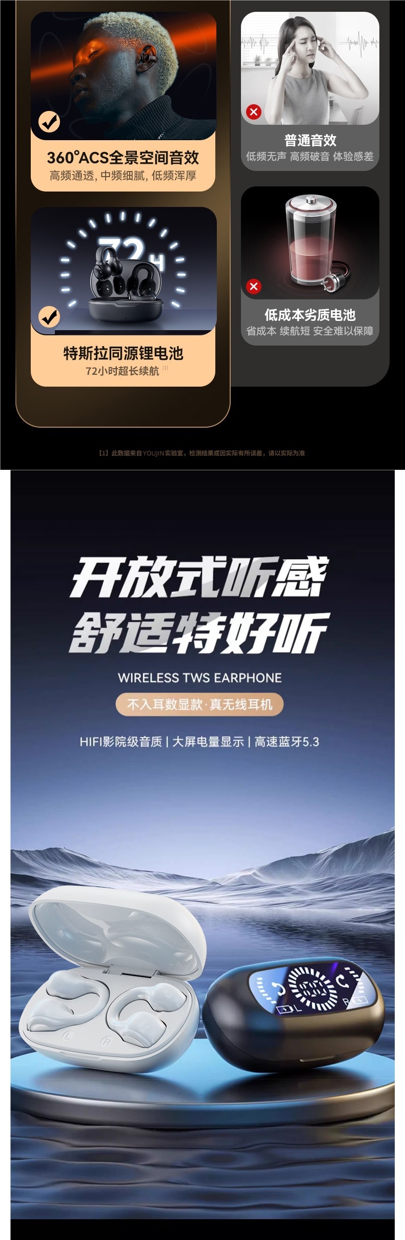 AI翻译G126蓝牙耳机不入耳超长续航游戏运动通用Q72耳夹式